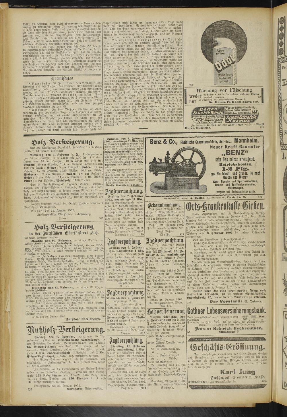 Ilbeshausen, 28. Jan. 1902. Großherzogl. Bürgermeisterei.