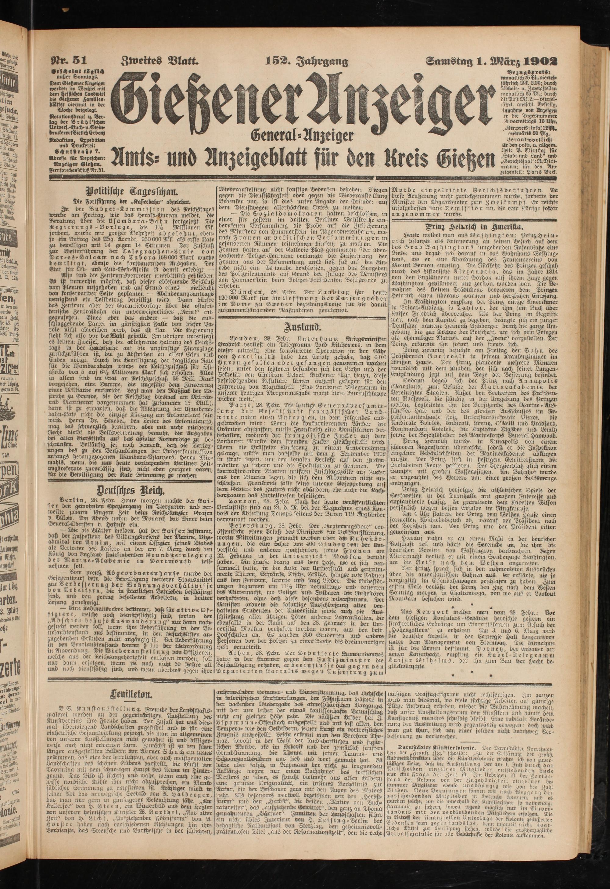 Samstag 1. Marz 190»