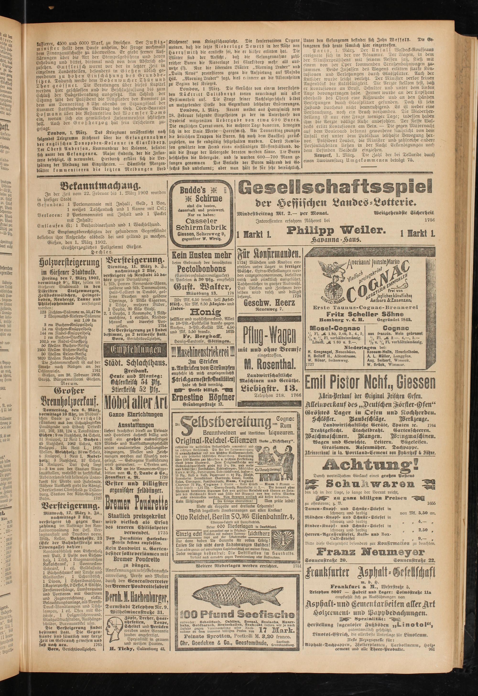Gießen, am 28. Februar 1902. Großh. Bürgermeisterei Gießen.