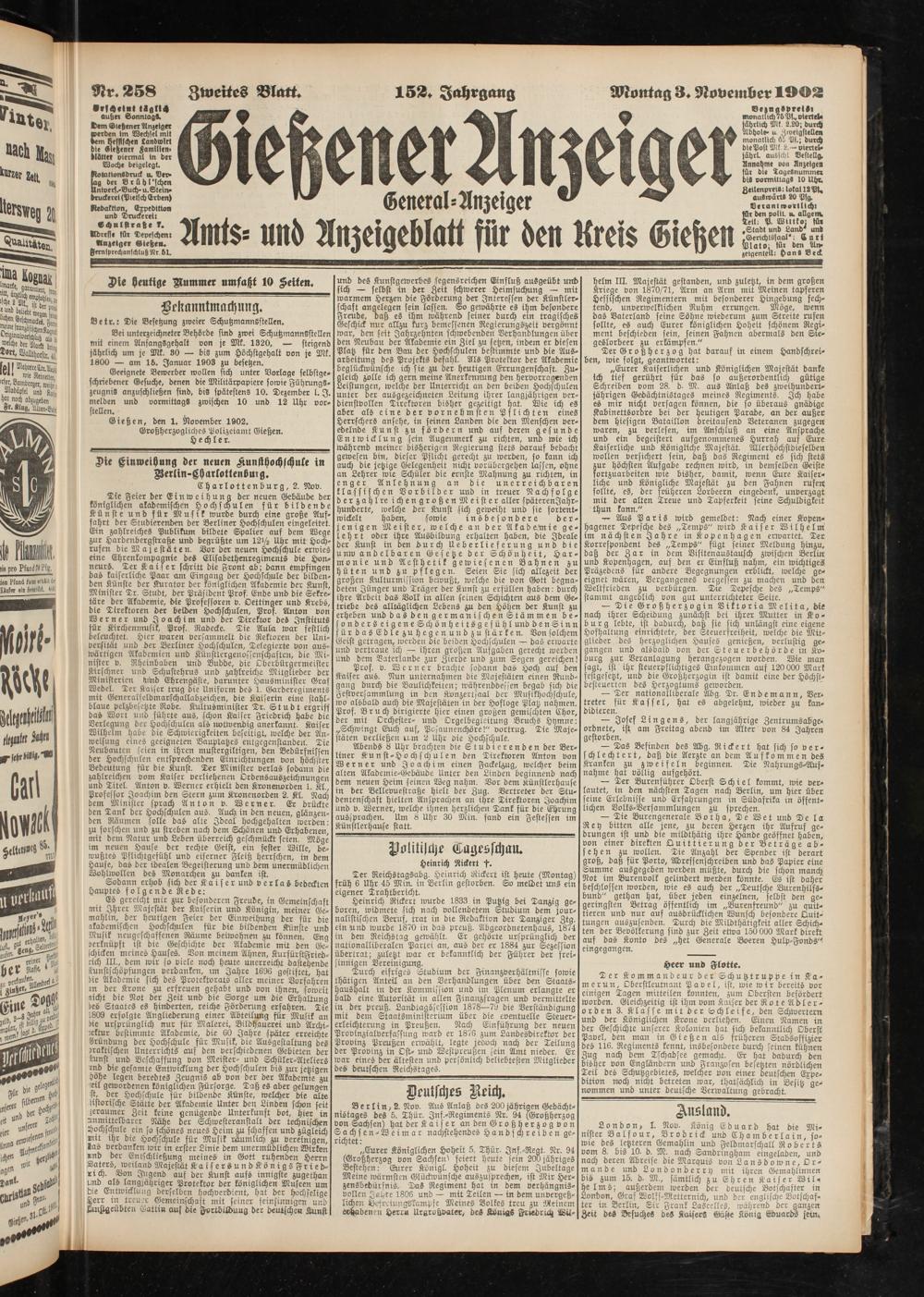 Gießen, den 1. November 1902.