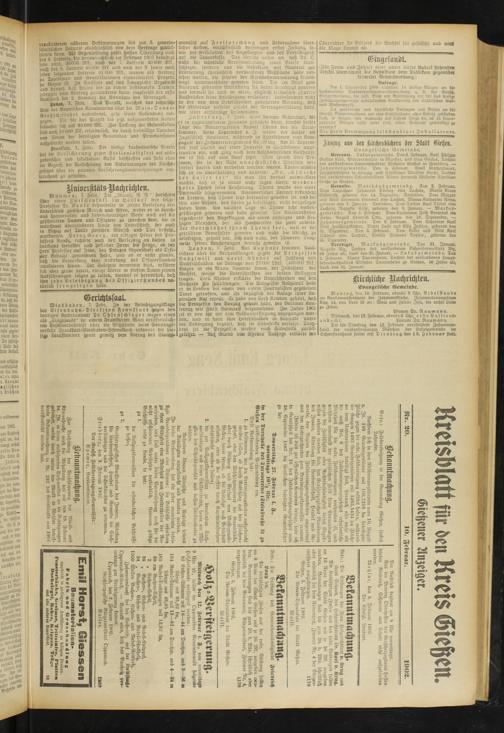 Beerdigte. Markusgem einbe. Ten 81. Januar. Auguste Vix, 'Tochter des verstorbenen Schneidermeisters Vix, 83 Jahre alt, starb den 30. Januar. — LukaSgerneinde. Den 2. Februar. Marie Dauernheim, Tochter des verstorbenen Hauptkassenbuchhallers Wilhelm Tauernheinr zu Gießen, 58 Jahre alt, starb den 31. Januar. ■