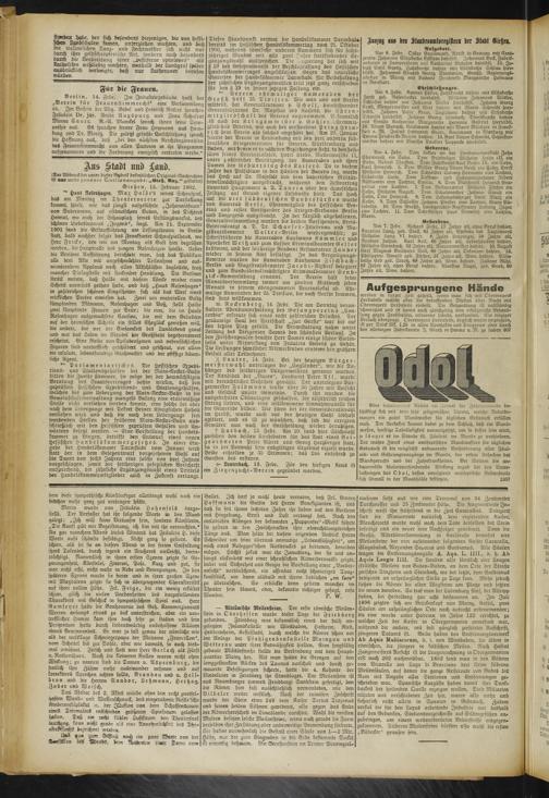 lDer Abdruck der unter dieser Rrzbrik befindlichen Original-Nachrichten ist nur unter genauer Quellenangabe: „Gieß. Auz." gestattet) Gießen, 15. Februar 1902.