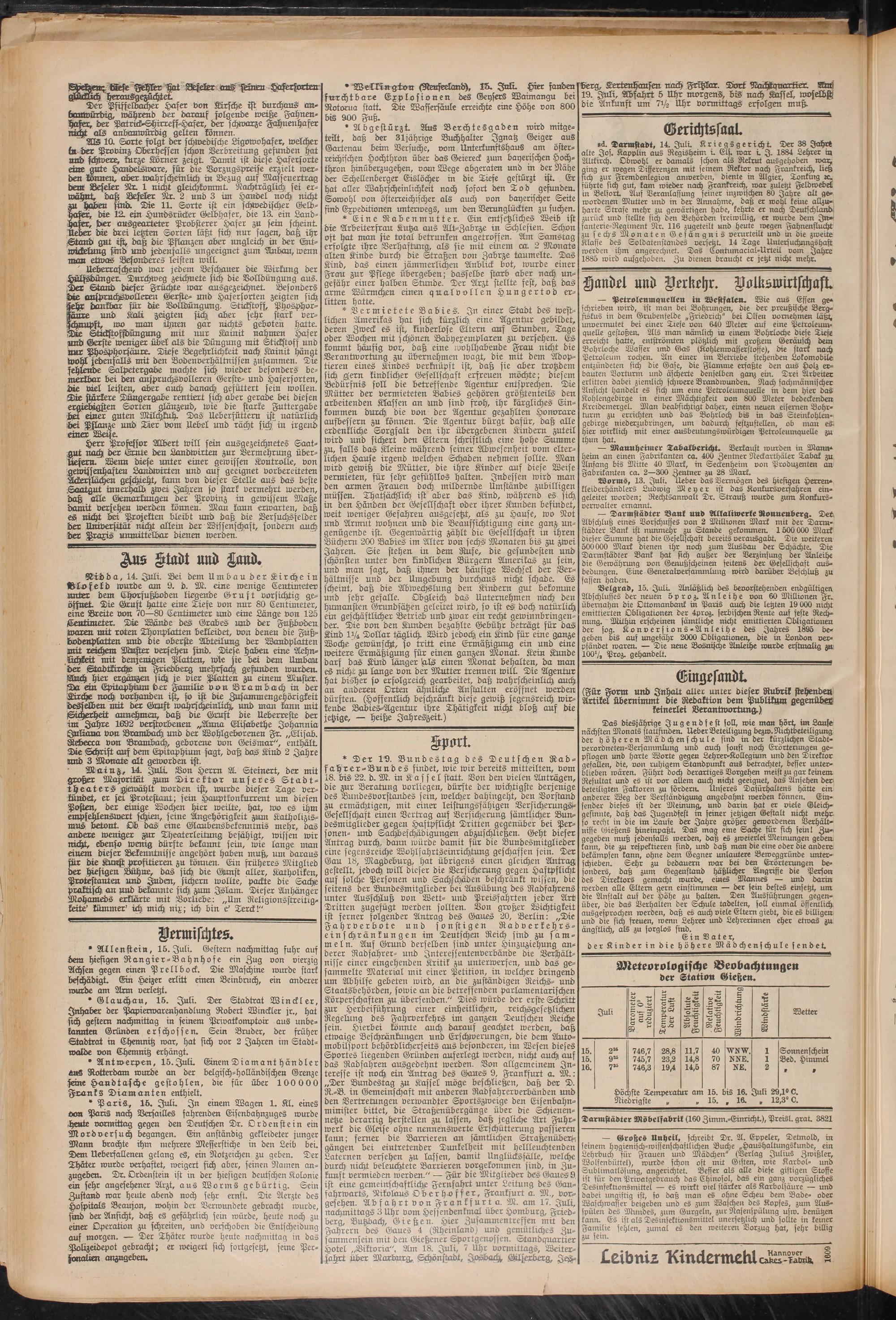 Worms, 13. Juli, lieber das Vermögen des hiesigen Herren» kleiderhändlers Ludwig Meyer ist das Konkursverfahren ein- geleitet worden; Rechtsanwalt Dr. Strauß wurde zum Konkursverwalter ernannt.