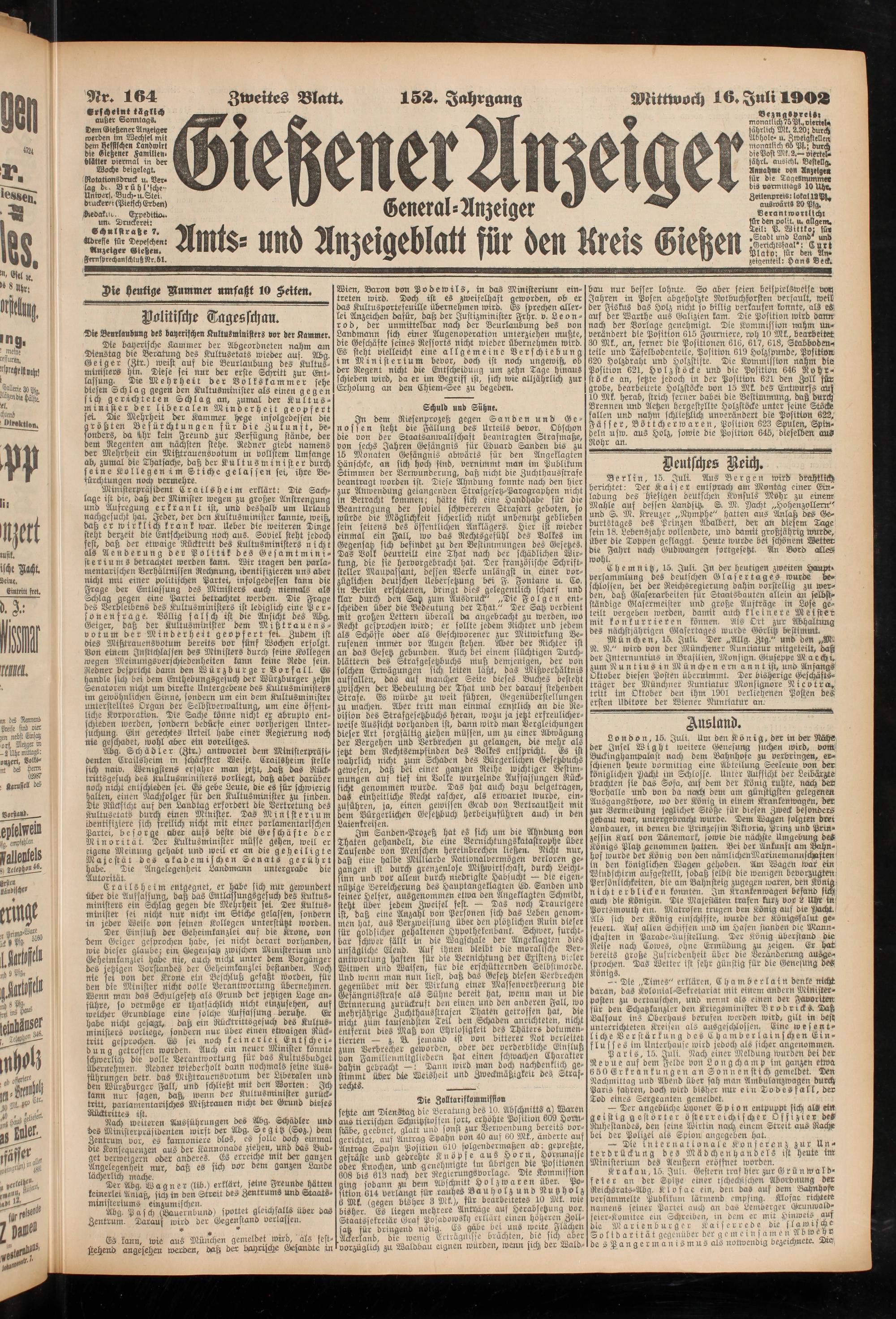 Dem Gießener Anzeiger werden im Wechsel mit dem »elfischen Landwirt die Siegener Familien, blätter viermal in der Woche beigelegt.