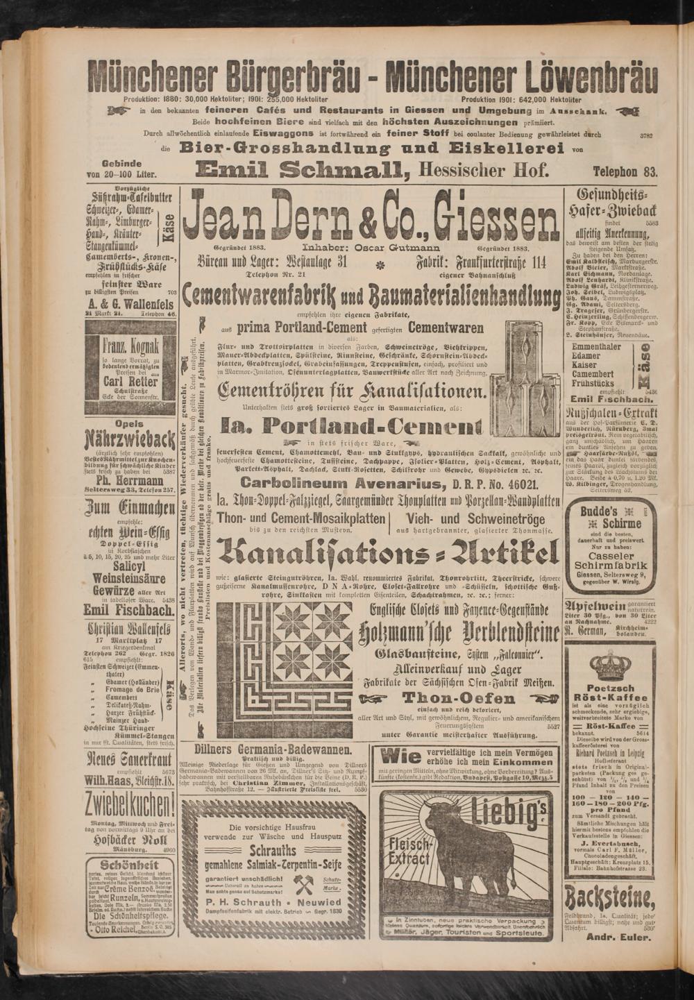 Zu haben bei den Herren: Lmil Ualbstcisch, Marburgerstr. Adolf Bieler, Atarktstraße. Karl Eichmann, Nordanlaae. Adolf Lcnhardt, jilinikstrage. Ludwig Gräf, Leihgeslernerweg. Joh. Seibel, Ludwigsplatz. PH. Gaus, Tammslrage. Gg. Adami, Scltersberg. I. Tragescr, Grünbergerstr. C. Hein zcrling, Schiffenbergerw. Fr. Mopp, Ecke Bismarck- und Slephanstraste.