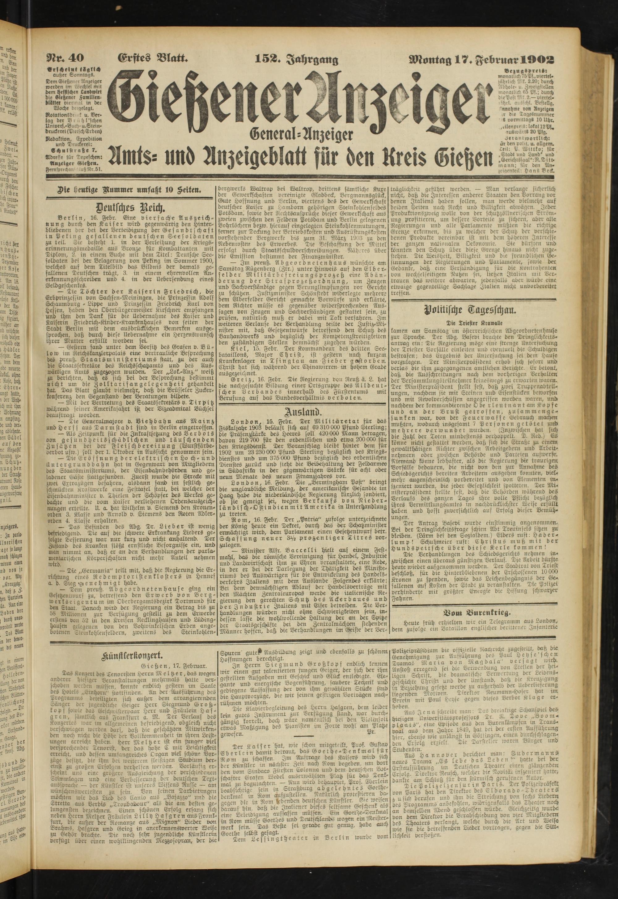 Dem Gießener Anzeiger werden im Wechsel mit dem Hessischen Landwirt die Siebener Zamilien- blätter viermal in der Woche bcigetegt.