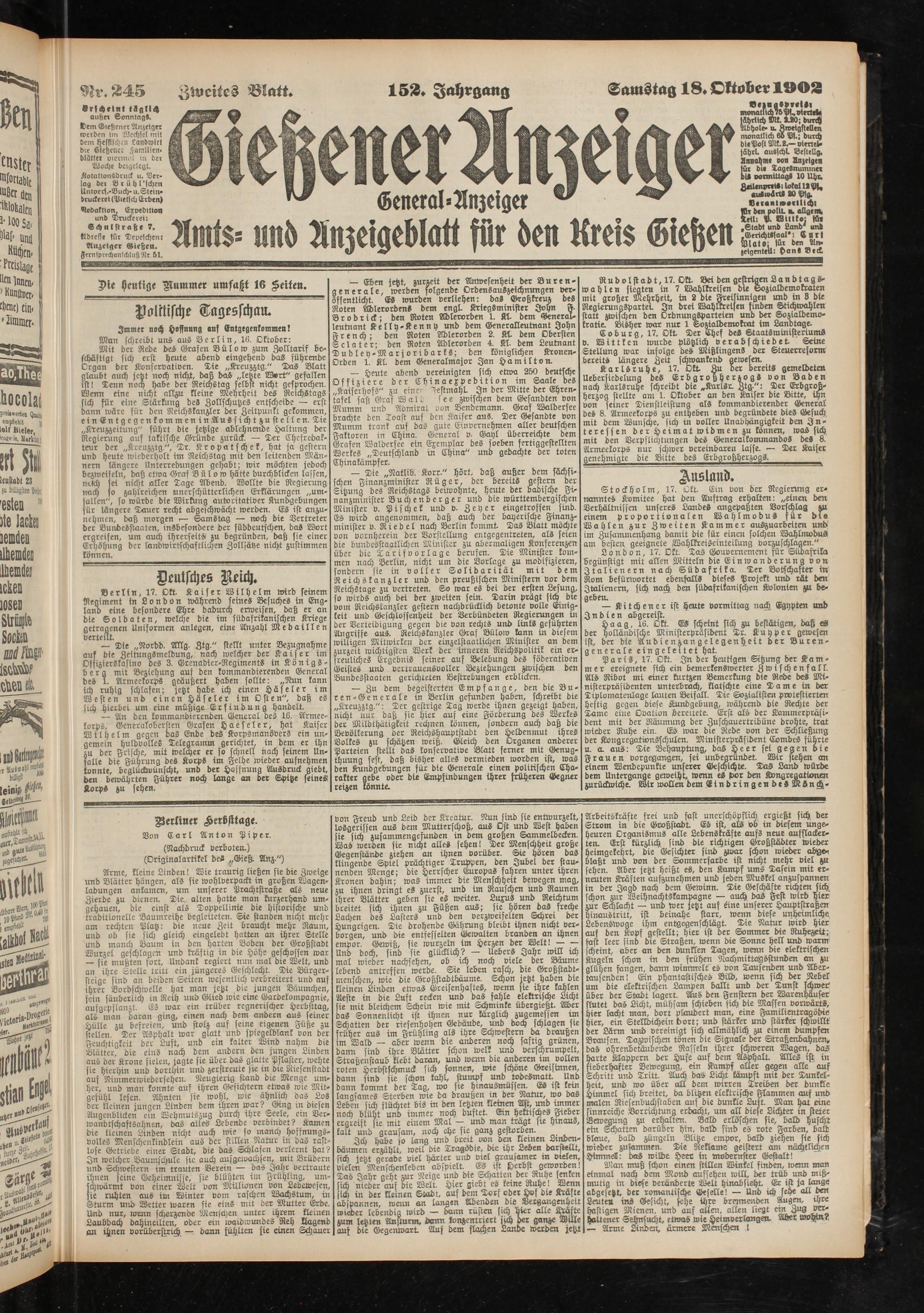 Samstag 18. Oktober 1902