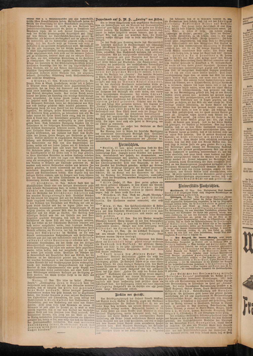 • München, 17. Nov. Nach der „Augsb. Abendztg." hatte ein Erlanger Student hier zwei Pistolenduelle. Die Duellanten wurden verwundet, aber nicht schwer.