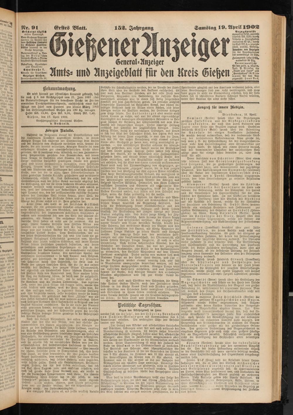 Erstes Blatt. 153. Jahrgang Samstag 19. April LS«S