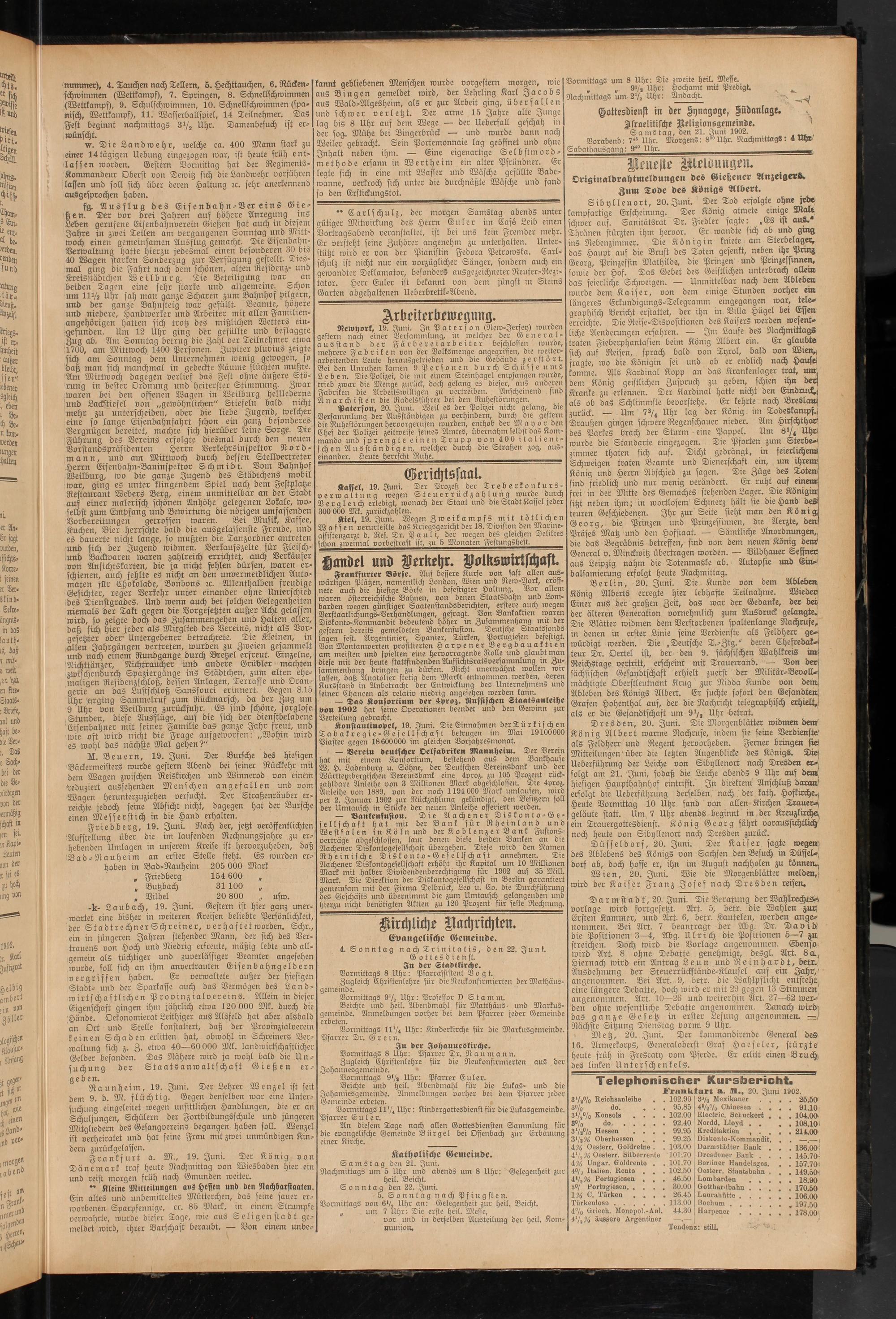 Frankfurt a. M., 19. Juni. Der König von Dänemark traf heute Nachmittag von Wiesbaden hier ein und reist morgen früh nach Gmunden weiter.