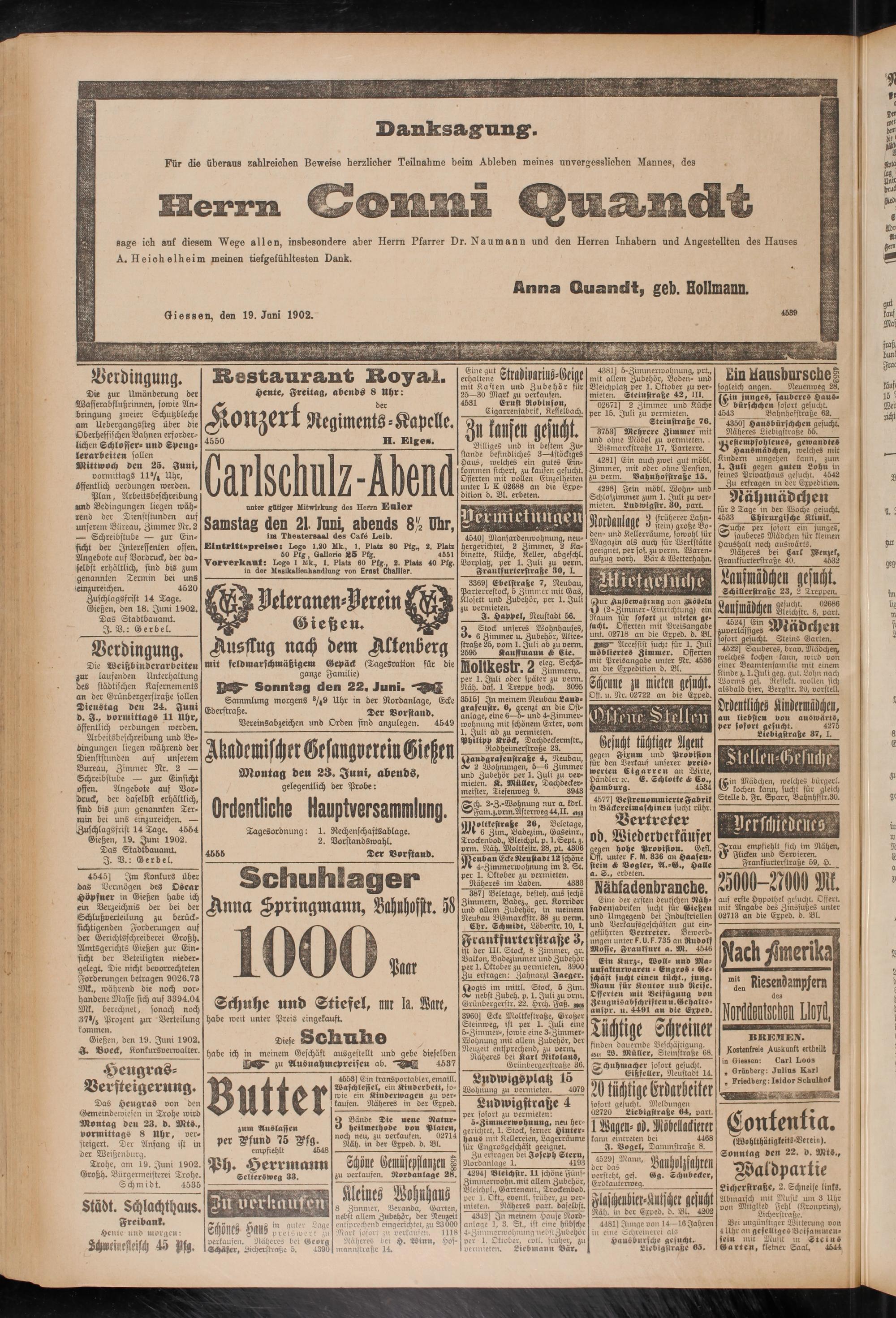 Gießen, den 19. Juni 1902. I. Boeck, Konkursverwalter.