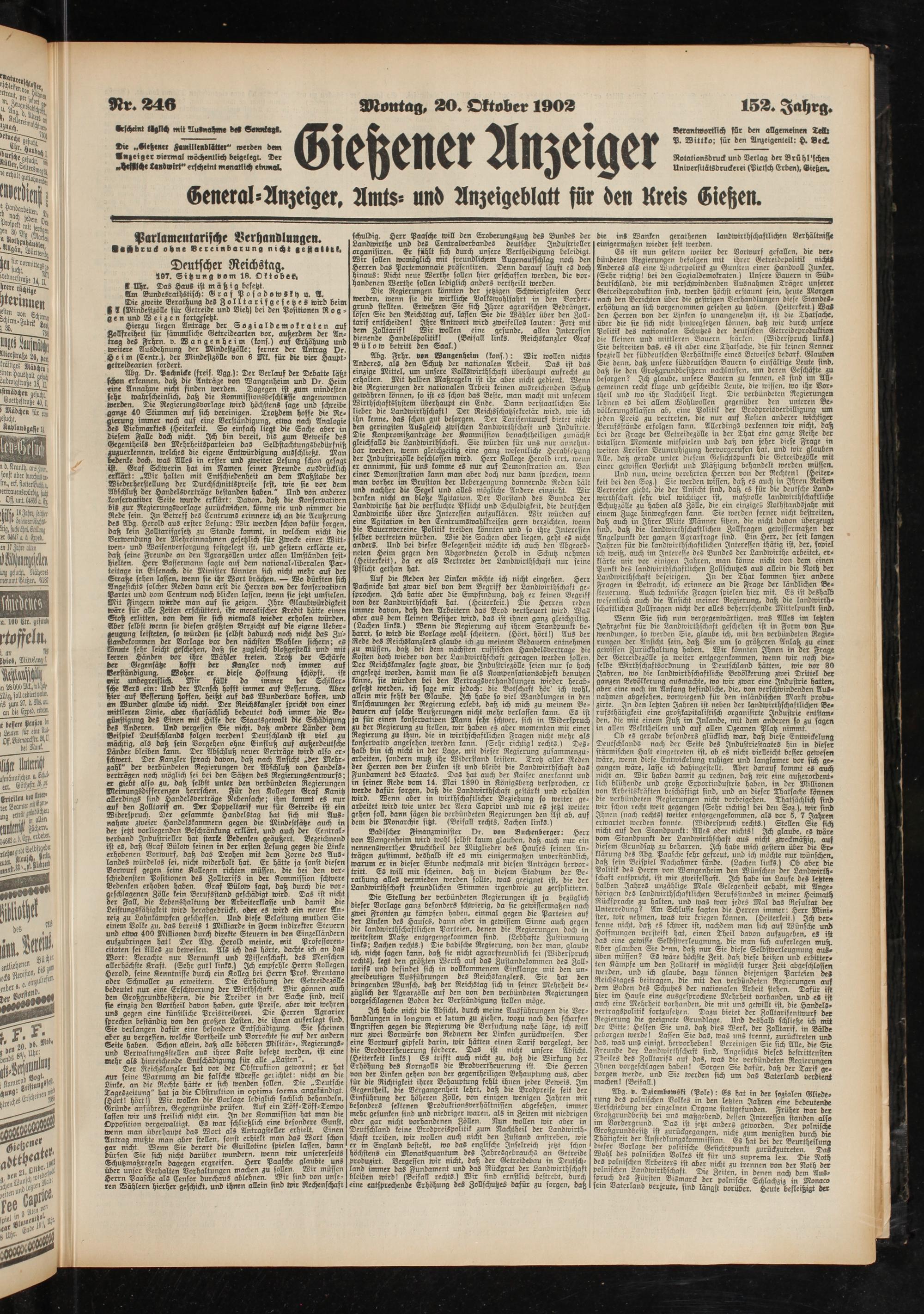 Die „Gießener KamilienblStter" werden dem Anzeiger viermal wöchentlich beigelegt. Der «hessische Landwirt" erscheint monatlich einmal.