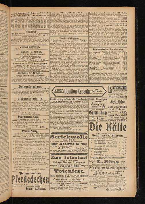Eine Liste zur Erhebung von Beiträgen wird nicht herumgehen. Vielmehr bitten wir, die uns zugeüachten Gaben recht bald an eilte der nachbenannten Vorslandsdamen gelangen zu lassen: Frau öiechtsanwalt Grünewald, Liebigslraße 21; Frau Johanna Haas, Oslaiüage 31; Frau Rechnungsrat Kalbfleisch, Ludwigstraße 7; Frau Professor Leist, Ostanlage 36; Frau Bürgermeister Mecum, Löberstraße 23; Frau Pfarrer Naumann, Südanlage 8: Frau Luise Otteus, Bismarckstraße 11; Frau Lina Schwall, Oslan- lage 36; Fräulein Luise Wortmanu, Dammslraße 82.