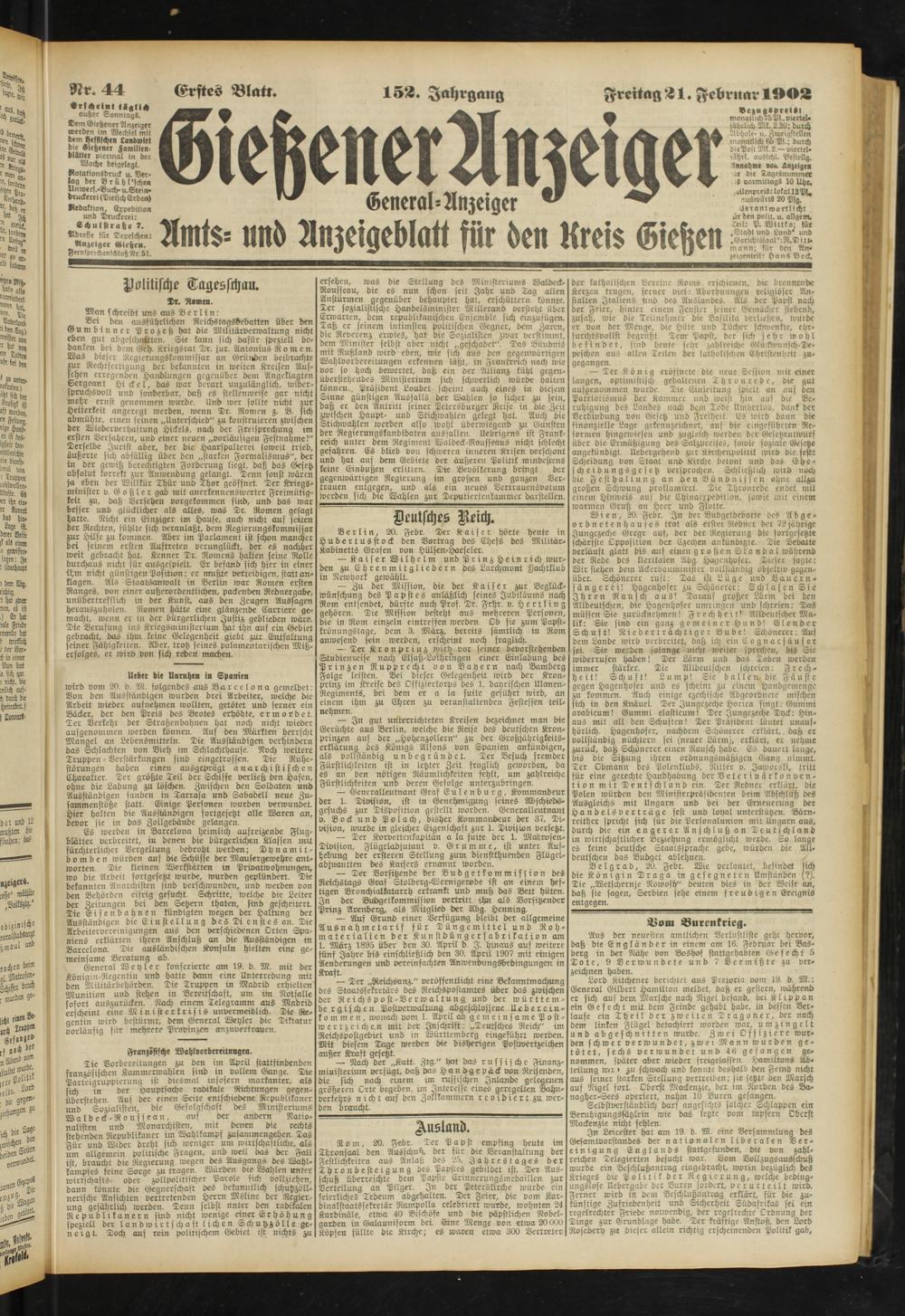 In Leicester hat am 19. d. M. eine Versammlung des Gefamtvorstandes der nationalen liberalen Vereinigung Englands stattgefunden, die von zahlreichen 2elegierten besucht war. Vom Vollzugsausschuß wurde ein Beschlußantrag eingebracht, worin bezüglich des Krieges die Politik der Regierung, welche bedingungslose Uebergabe der Buren fordert, verurteilt wird. Ferner wird in dem Bescblußantrag erklärt, für die zukünftige Zufriedenheit und Sicherheit Südaftikas sei ein regelrechter Friede notwendig, der regelrechte Ordnung der Tinge zur Grundlage habe. Ter kräftige Anstoß, den Lord Rosebery zur dieser allein richtig erscheinenden Politik gab,