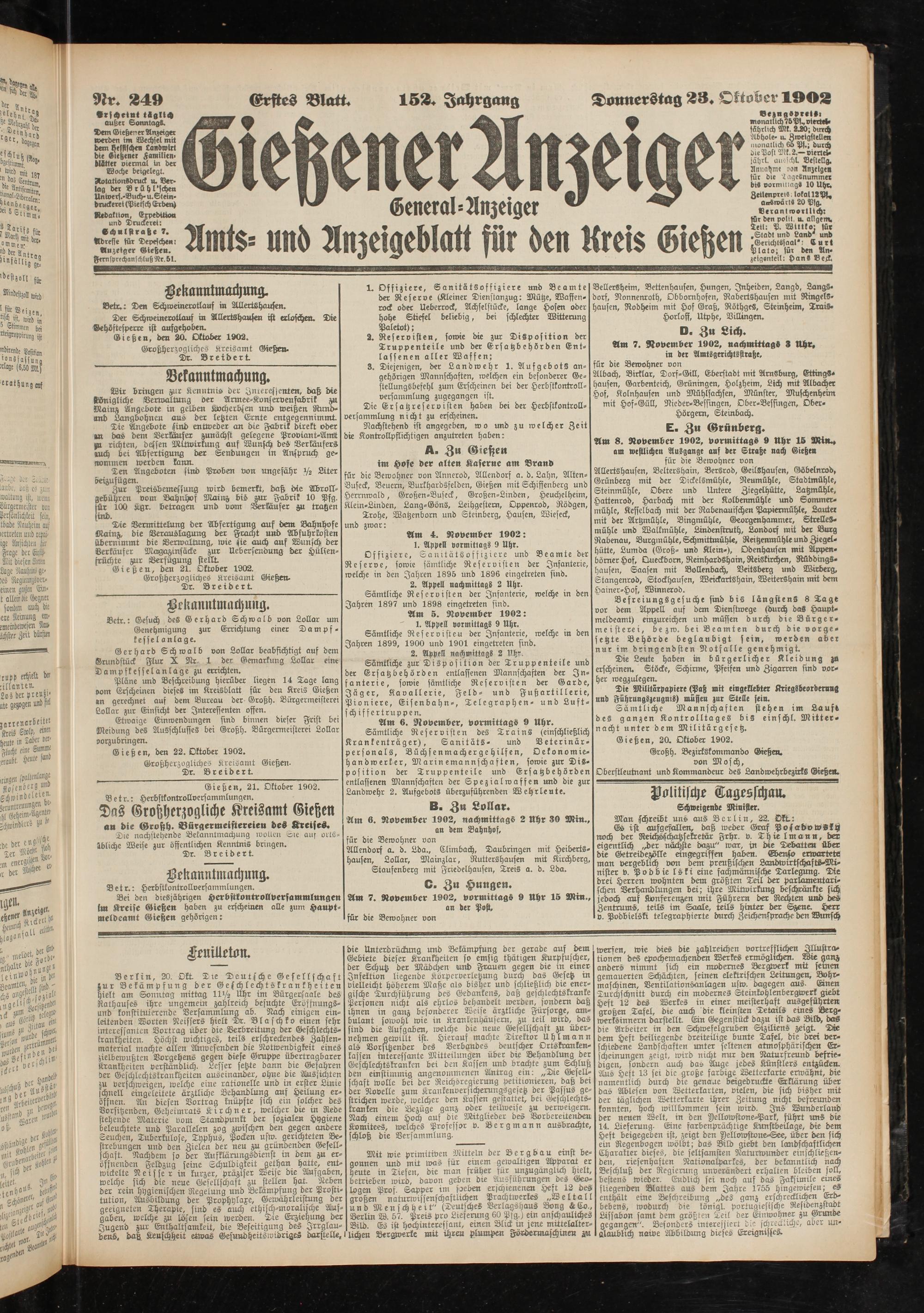Gießen, den 22. Oktober 1902.