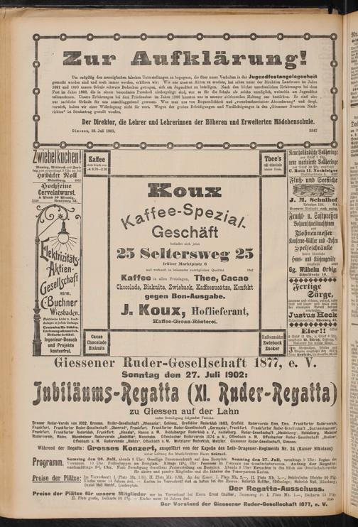 Sonnhg den 27. Juli 1902: JnbiUoms-tygatta (XI. Wrr-lstMsl zu Giessen auf der Lahn