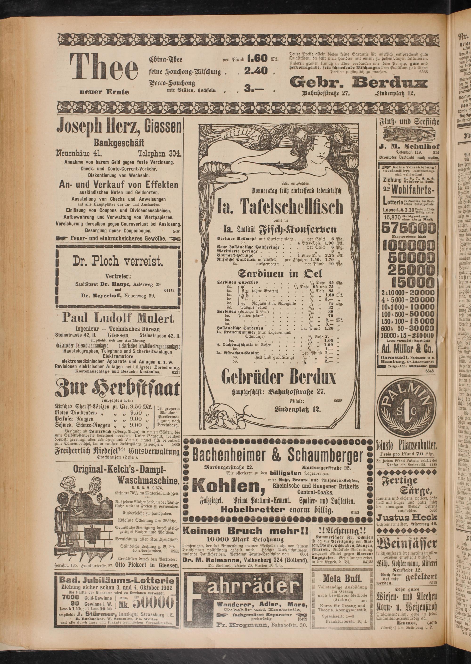 Ziehung sicher schon 3. und 4. Oktober 1902