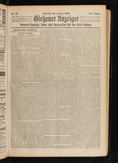 Die „Gießener Lomilienblätter" werden dem Anzeiger viermal wöchentlich beigclegt. Der »hessische Landwirt" erscheint monatlich einmal.
