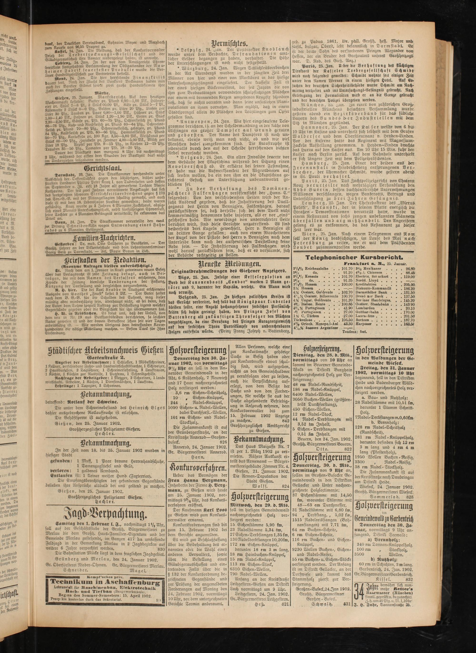 In der Zeit vom 18. bis 25. Januar 1902 wurden in hiesiger Stadt