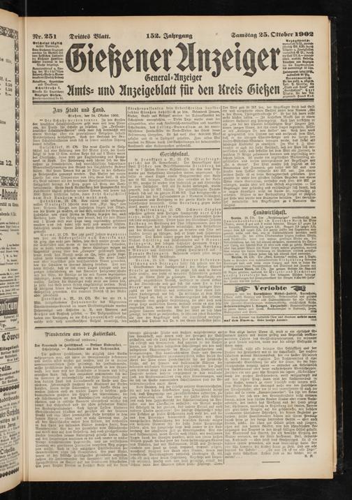 Dem Gießener Anzeiger werden Im Wechsel mit dem Hessischen Landwirt die Siebener ZamUieu- blühet viermal in der Woche beigelegt.
