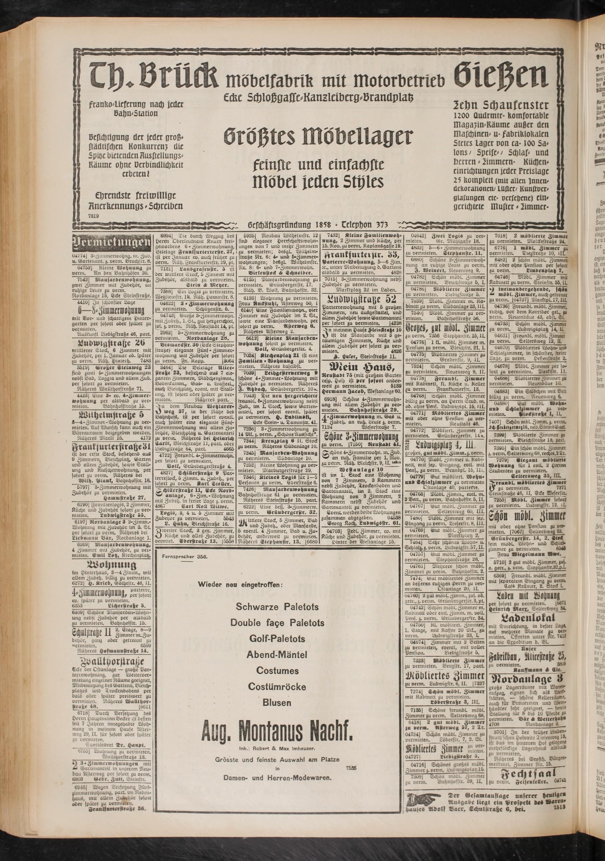 Zehn Sdtjaufcnstcr 1200 Qudrmtr- komfortable magann»Käumc außer den Maschinen- u- fabriklokalen Stetes Lager von ca-100 Sa» Ions/ Speise»/ Schlaf» und hcrren»Zimmern- Kuchen» einrichmngen jeder Preislage 25 komplett (mit allen Innen» dekorationnu LUßcr/ Kunde er» glalungcn etc- Derlei)cne) ein» gerichtete Muster»Zimmer-