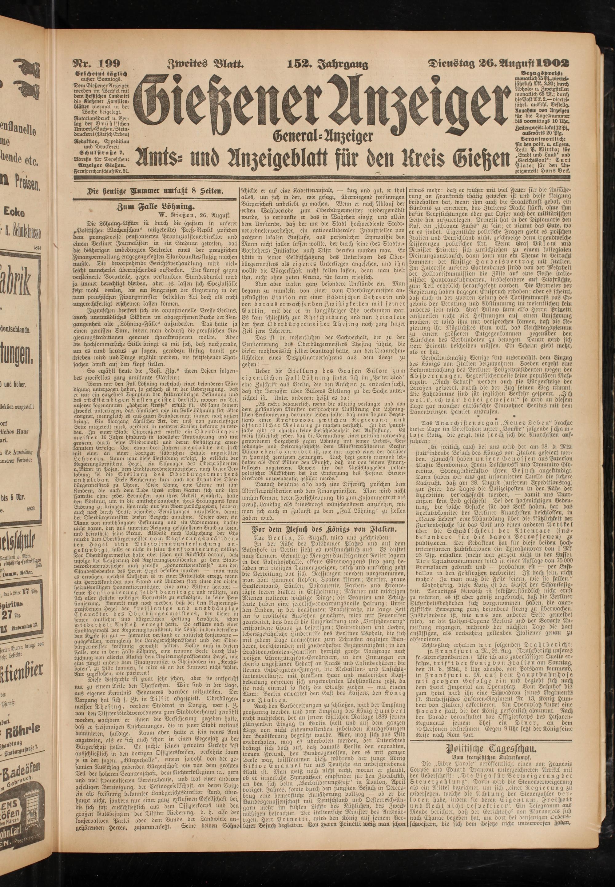 Adresse für Depeschen: Anzeiger Gießen.