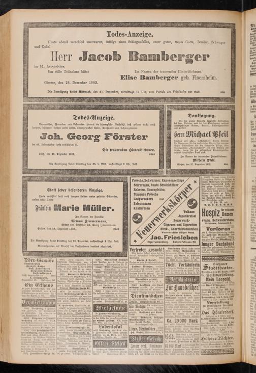Die Beerdigung findet Dienstag den 80. Dezember, nachmittags 8 Uhr, statt. Blumenspenden auf Wunsch der Verstorbenen dankend abgelehnt.