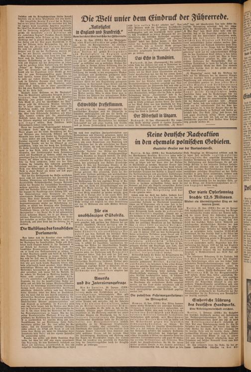 ausführlichen Auszügen wird die Führerrede Schweden wiedergegeben und von der Presse eine deutliche Antwort auf die Ausführungen Dala«