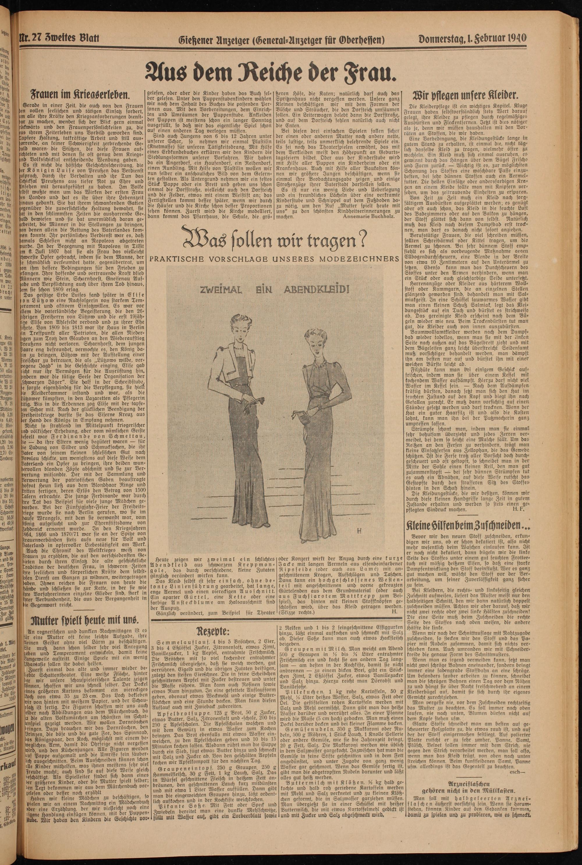 Die Kleiderpflege ist ein wichtiges Kapitel. Kluge Frauen haben selbstverständlich stets Wert darauf gelegt, ihre Kleider zu pflegen durch regelmäßiges Ausbürsten und Fleckentfernern Jetzt ist dies nötiger als je, denn wir müssen haushalten mit den Vorräten an Stoffen, die wir haben.