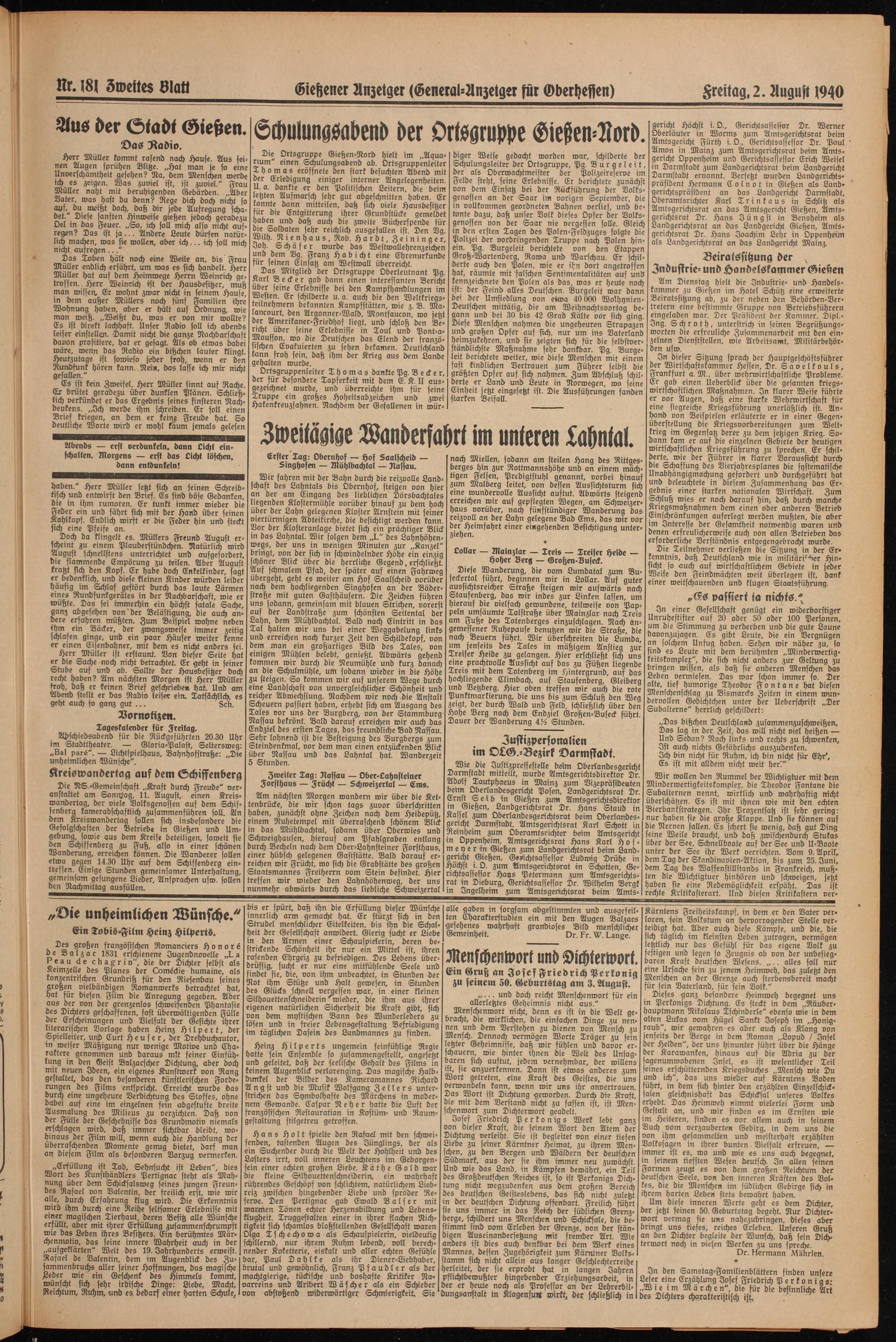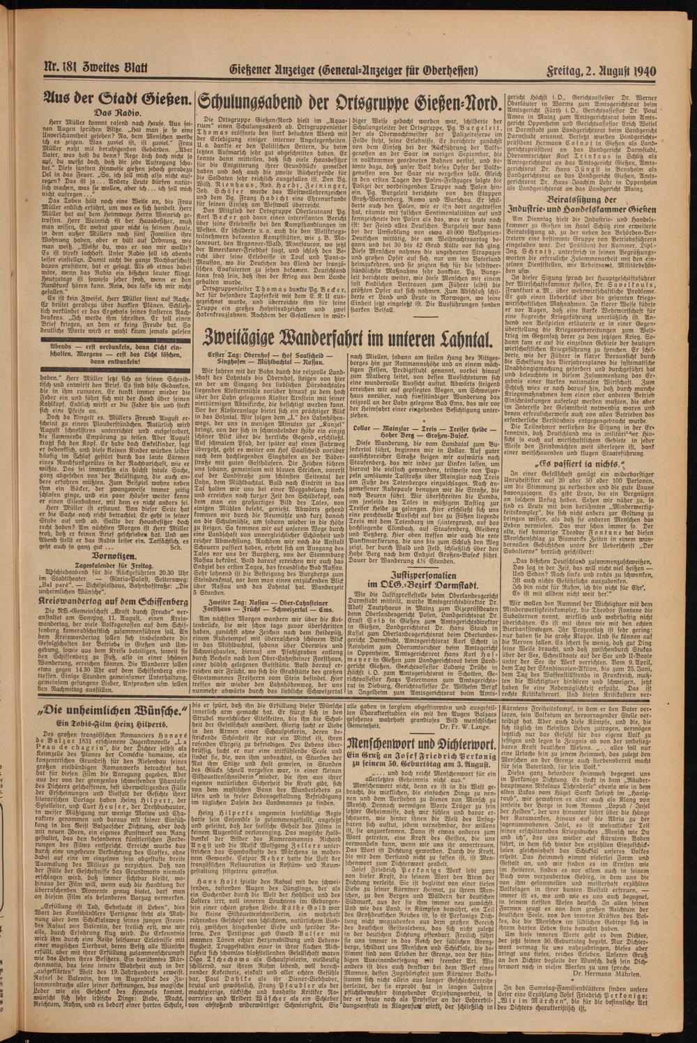 Freitag. 2. August 1940
