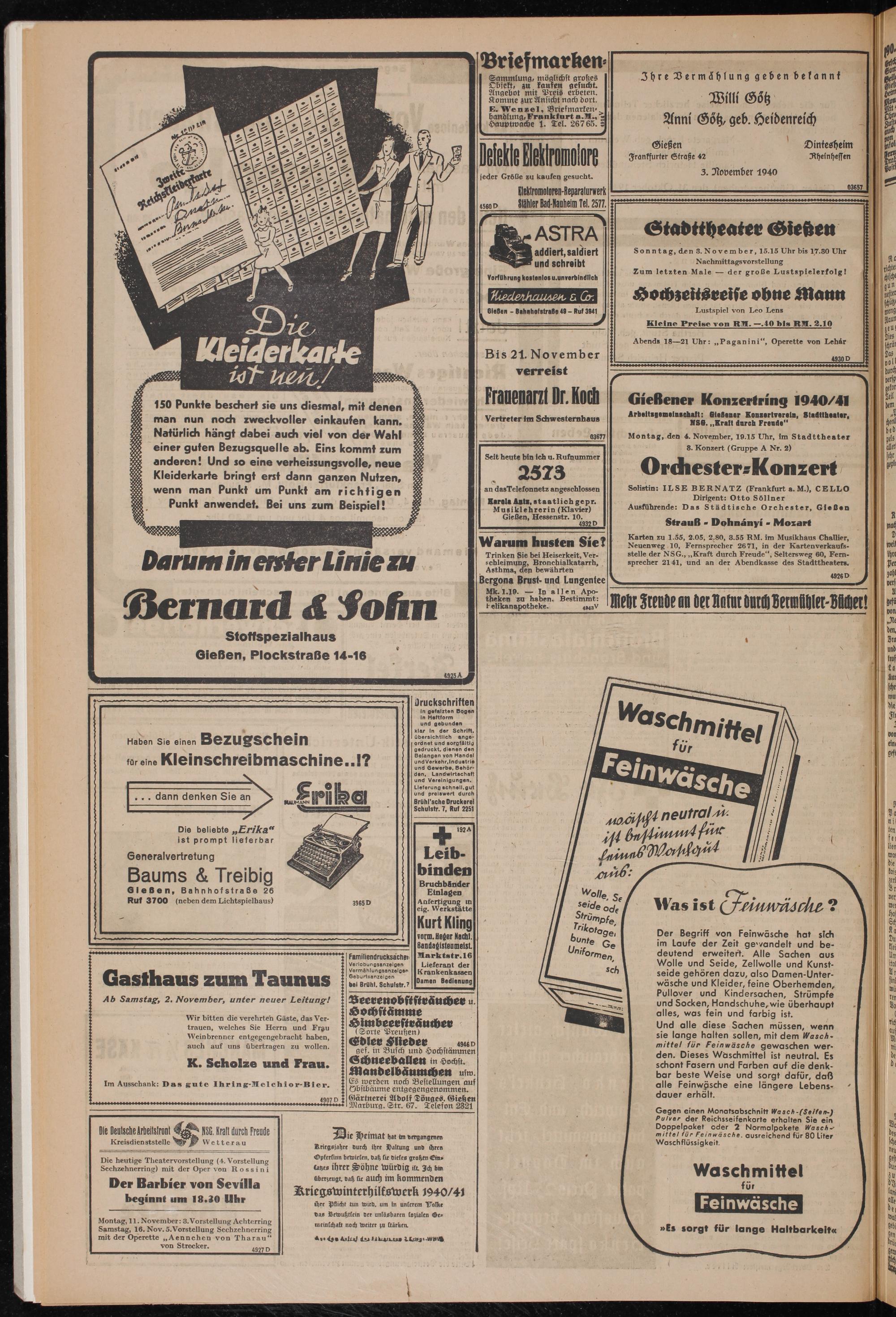 Arbeitigemeinichaft: Gießener Konzertverein, Staflttheator, NSG. „Kraft durch Freude“