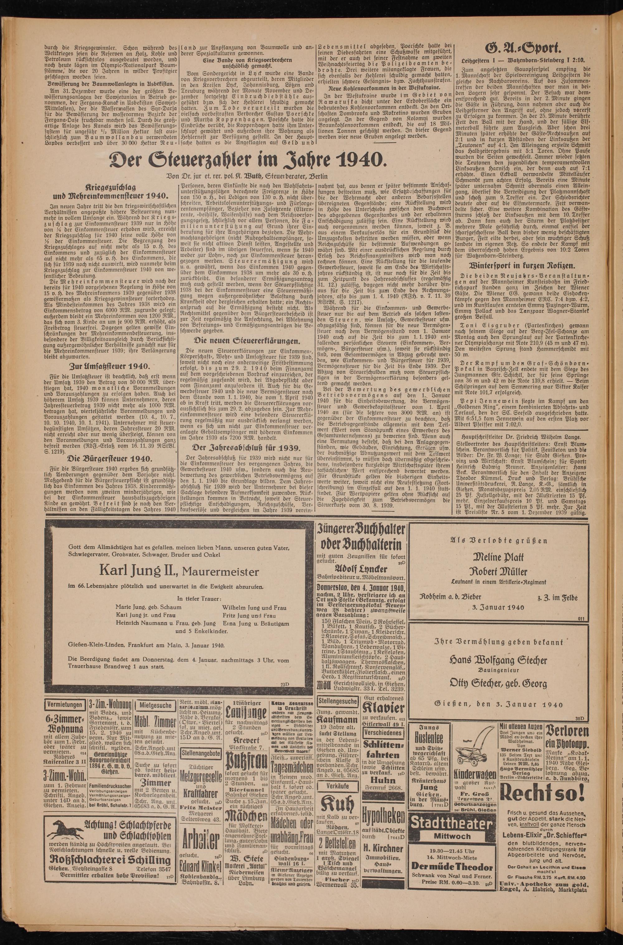 Gießen-Klein-Linden, Frankfurt am Main, 3. Januar 1940.
