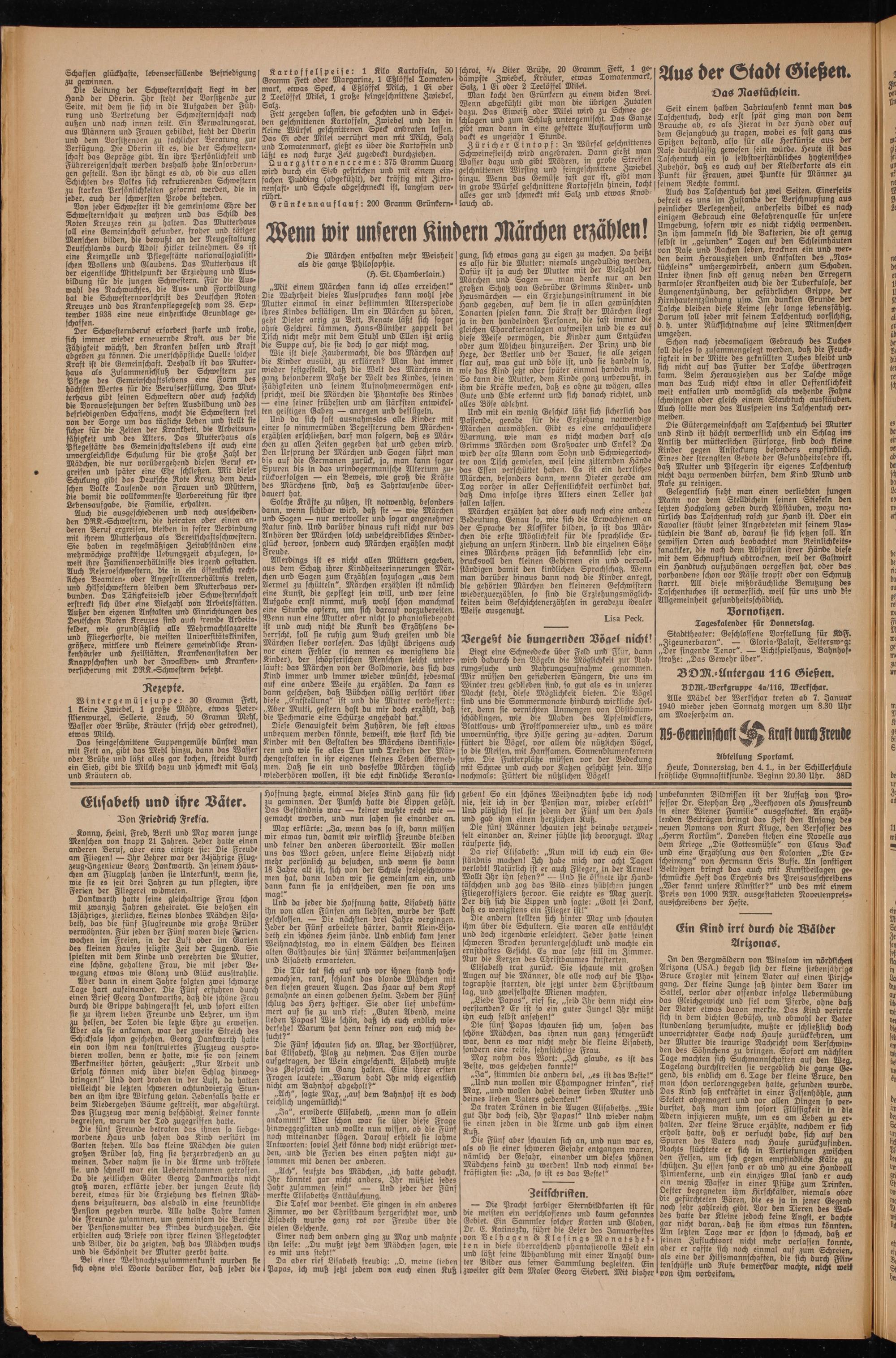 Alle Mädel der Werkschar treten ab 7. Januar 1940 wieder jeden Sonnatg morgen um 8.30 Uhr am Moeserheim an.