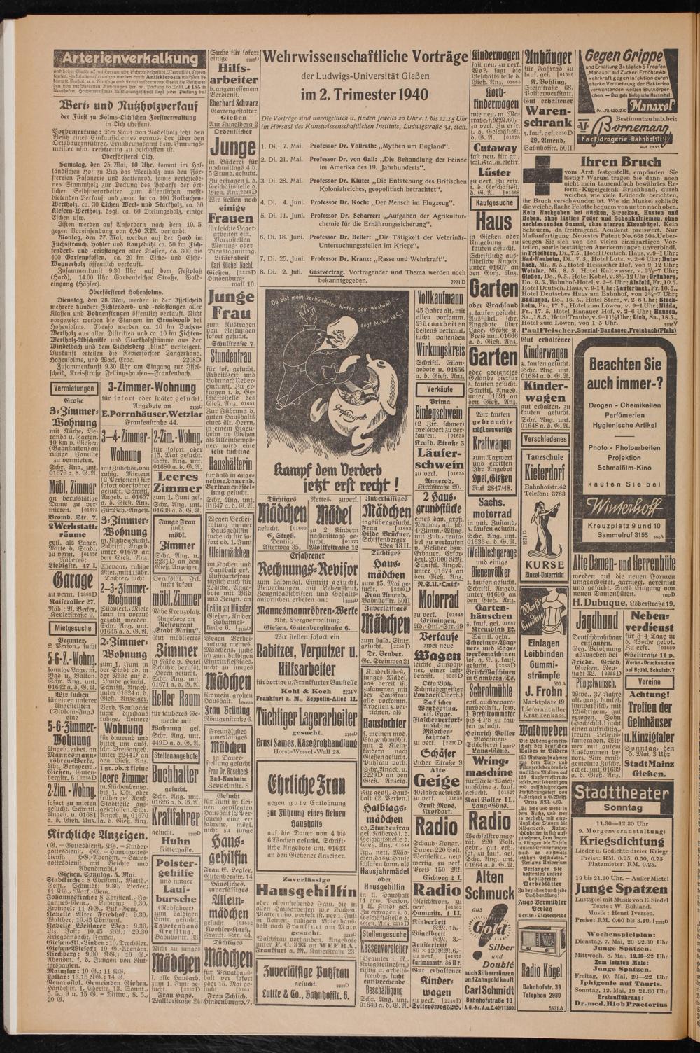 Listen werden auf Anfordern nach dem 10. 5. gegen Voreinsendung von 0,50 RM. versandt.