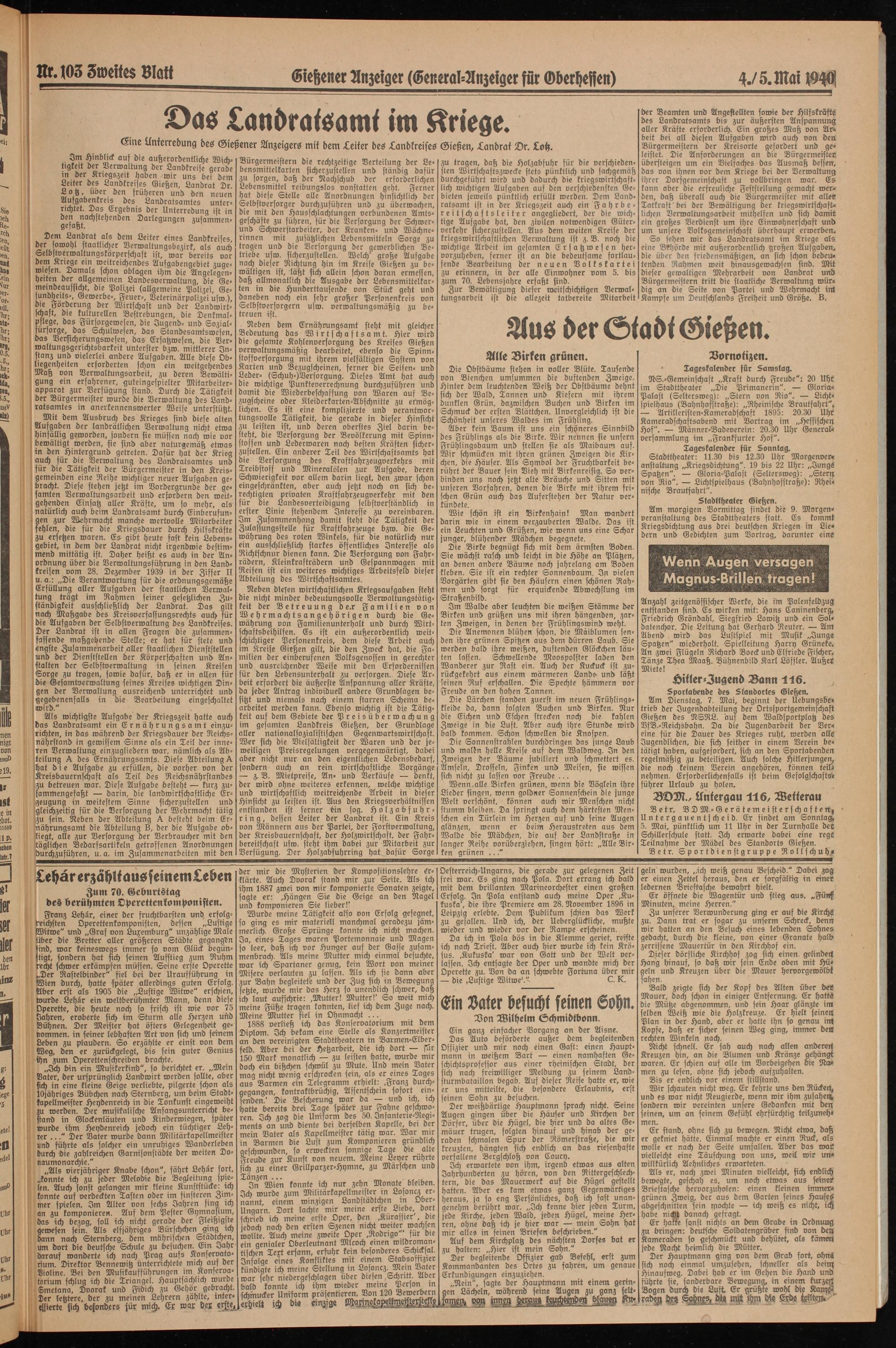 Eine Unterredung des Gießener Anzeigers mit dem Leiter des Landkreises Gießen, Landrai Or. Loh.