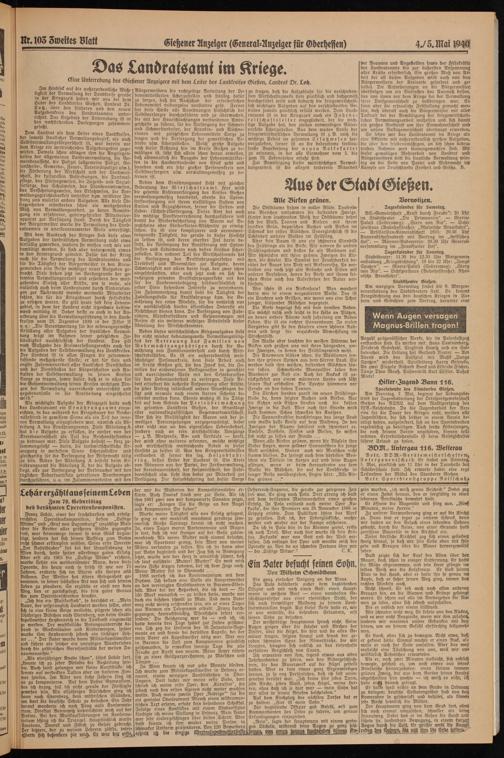 Im Hinblick auf die außerordentliche Wichtigkeit der Verwaltung der Landkreise gerade in der Kriegszeit haben wir uns bei dem Leiter des Landkreises Gießen, Landrat Dr. Lotz, über ben früheren und den neuen Aufgabenkreis des Landratsamtes unterrichtet. Das Ergebnis der Unterredung ist in ben nachstehenben Darlegungen zusammengefaßt.