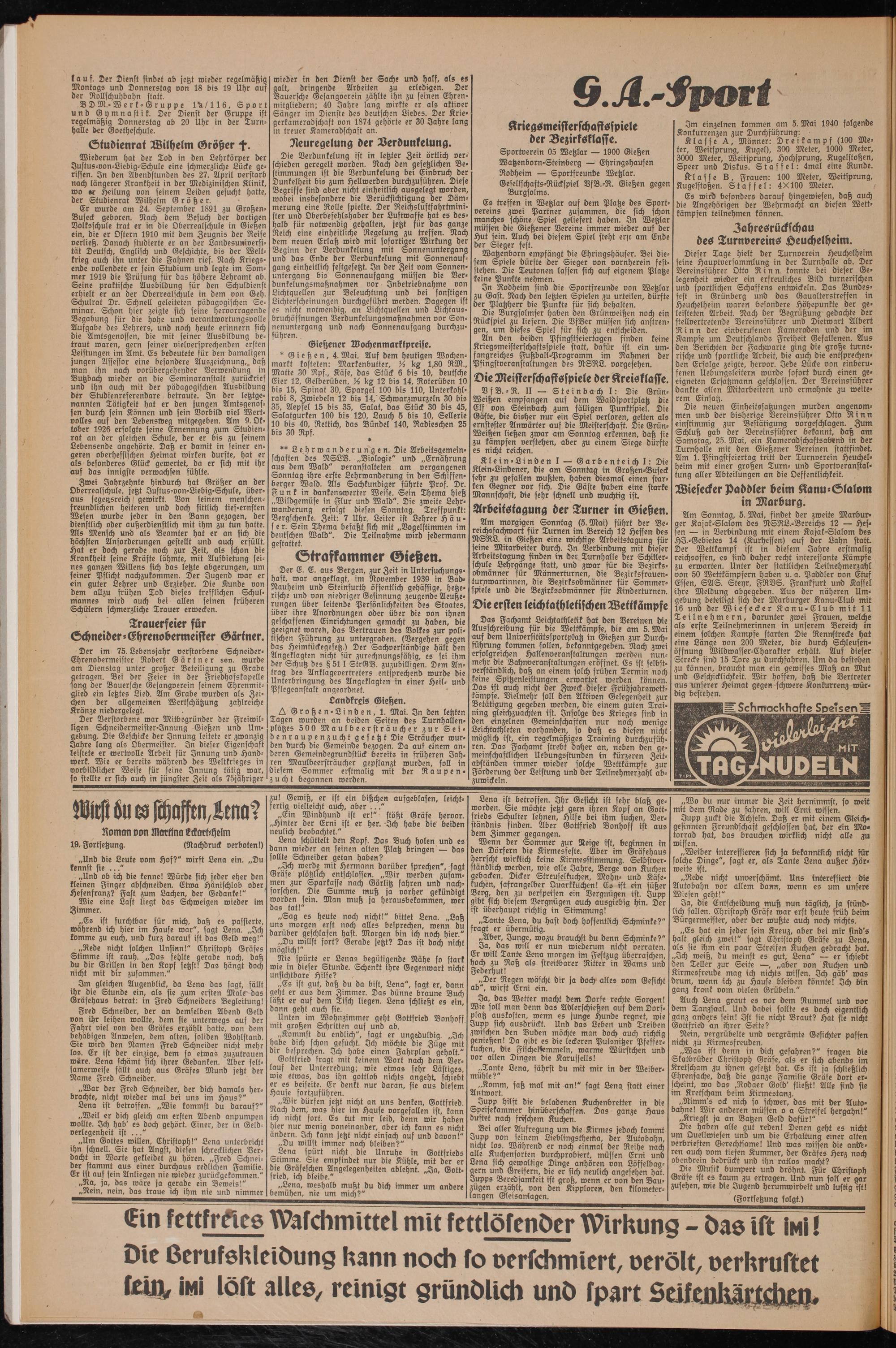 Die neuen Einheitssatzungen wurden angenommen und der bisherige Vereinsführer Otto Rinn einstimmig zur Bestätigung vorgeschlagen. Zum Schluß gab der Dereinsführer bekannt, daß am Samstag, 25. Mai, ein Kameradschaftsabend in der Turnhalle mit den Gießener Vereinen stattfindet. Am 1. Pfingstfeiertag tritt der Turnverein Heuchelheim mit einer großen Turn- und Sportveranstaltung aller Abteilungen an die Öffentlichkeit.