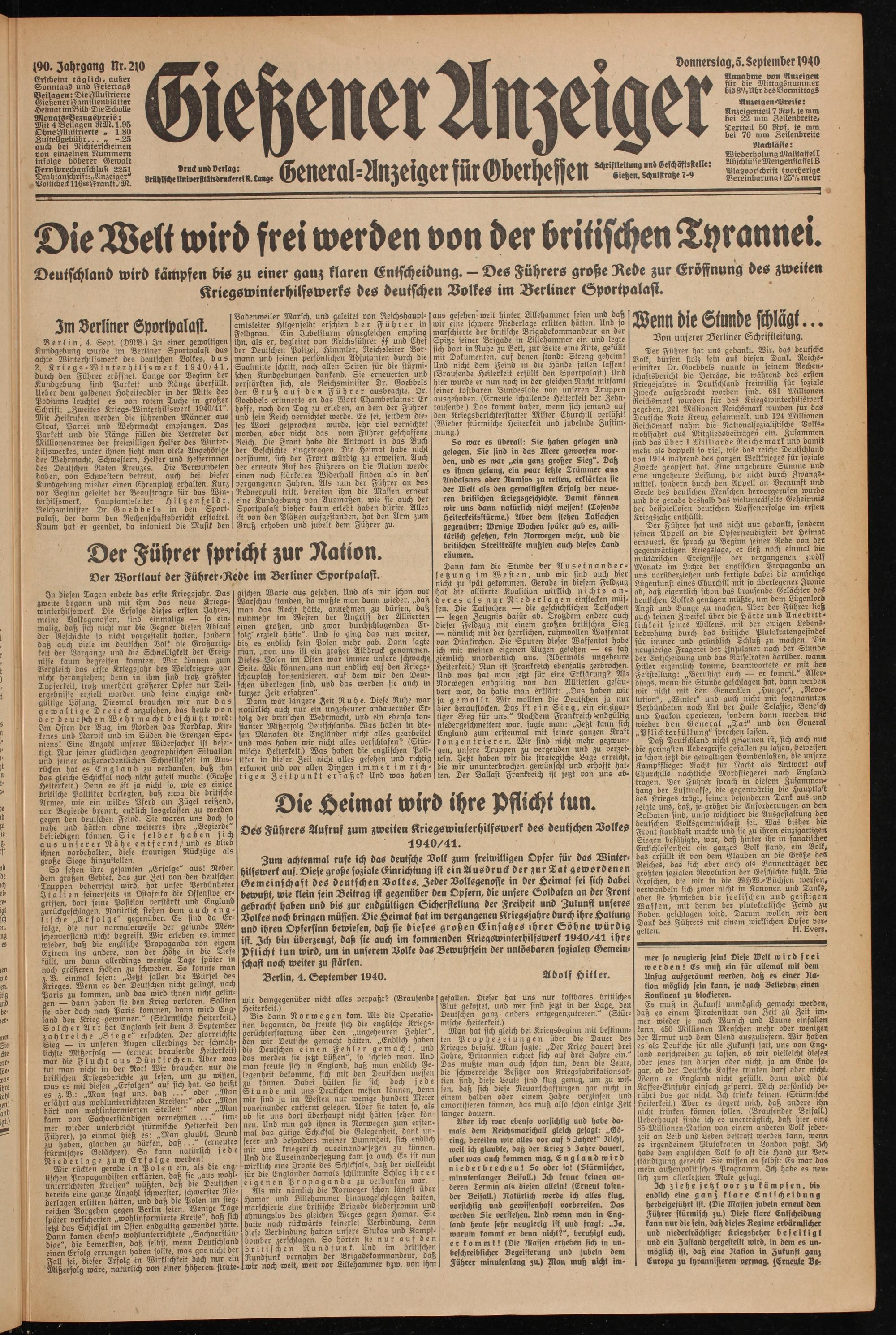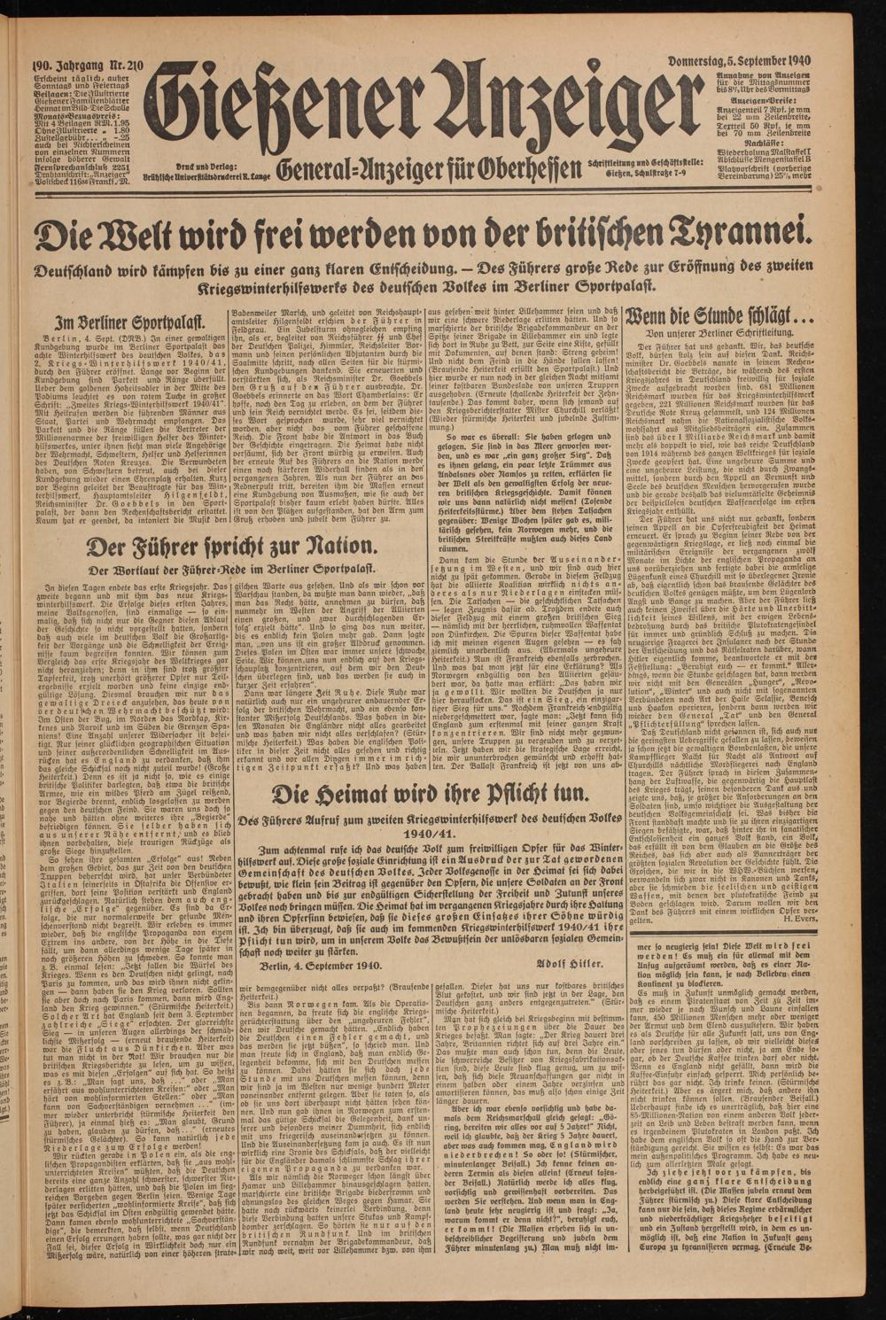 Donnerstag, 5. September 1940