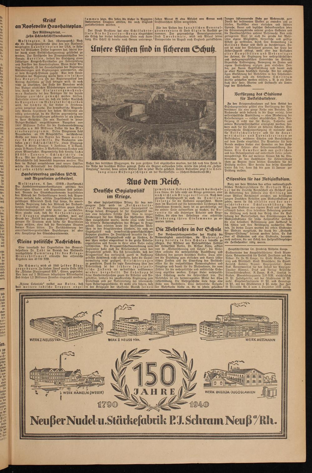 Eine innerhalb der Organisation des General- Inspektors Dr. Todt im Bereich des Westwalls durchgeführte Sammlung für das Kriegs- Winterhilfswerk erbrachte das erfreuliche Ergebnis von 43 739 RM.
