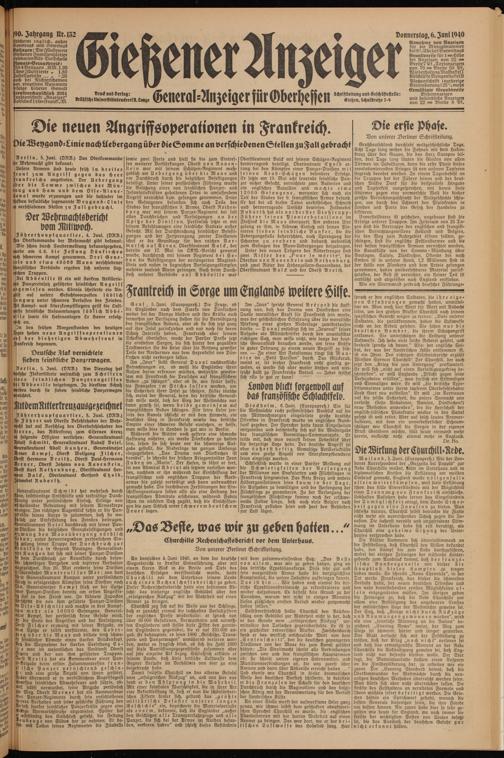 Jührerhauptquartier, 4. Juni (DNB.) Das Oberkommando der Wehrmacht gibt bekannt: Die schon durch Sondermeldung bekanntgegeben, wurde am 4.6. die Festung Dünkirchen nach schwerem Kampf genommen. Drei Generale und etwa 40000 Wann verschiedener französischer Verbände ergaben sich unseren siegreichen Truppen.