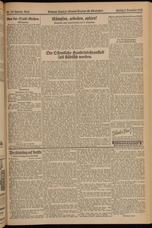 Kriegswirtschaft naturgemäß ihre Auswirkungen auf oas Beitragsauskommen gezeitigt hat und wohl noch weiter zeitigen wird. So ergab sich die zwingende Notwendigkeit, für die Schule eine Träger- schäft zu finden, die finanziell leistungsfähiger ist, als die Industrie- und Handelskammer cuf Grund ihrer beschränkten Zuschußmittel sein kann. Der Präsident, Dipl.-Ing. Schroth, hatte daher bereits vor einiger Zeit Oberbürgermeister Ritter über die Absicht des Trägerschaftswechsels unterrichtet und bei dieser Gelegenheit der Stadt Gießen die Trägerschaft für die Oeffentliche Handelslehranstalt angetragen. Oberbürgermeister Ritter versprach, in eine ernsthafte Prüfung dieses Vorschlages ein« zutreten und stellte in Kürze eine abschließende Besprechung in Aussicht. Da diese nunmehr anberaumt wurde, sollte die erweiterte Beiratssitzung Gelegenheit geben, alle Beiratsmitglieder über die Absicht und Gründe des Trägerschaftswechsels zu unterrichten.