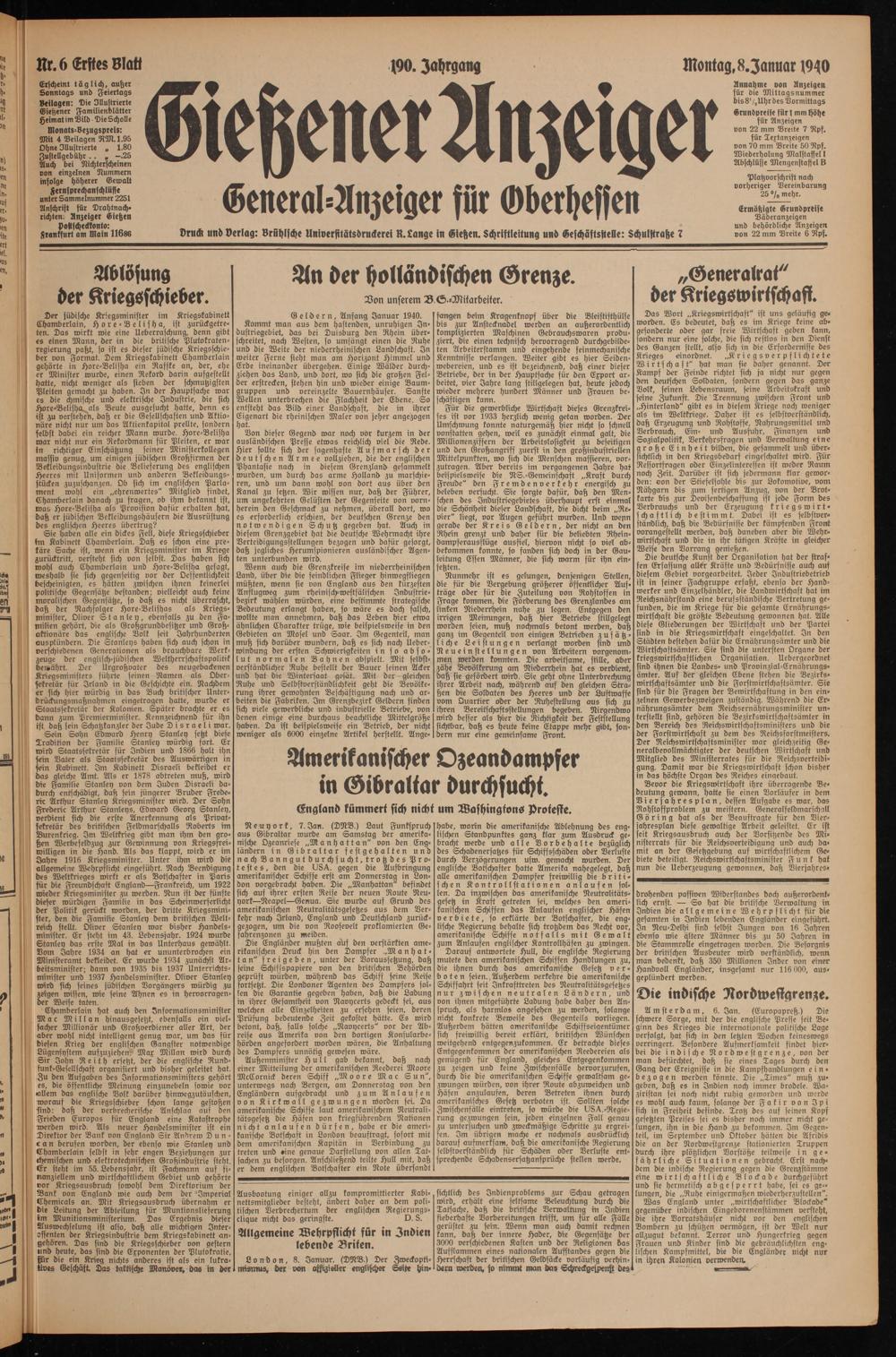 Erscheint täglich, sicher Sonntags und Feiertags Beilagen: Die Illustrierte Gießener Familienblätter Heimat im Bild Die Scholle