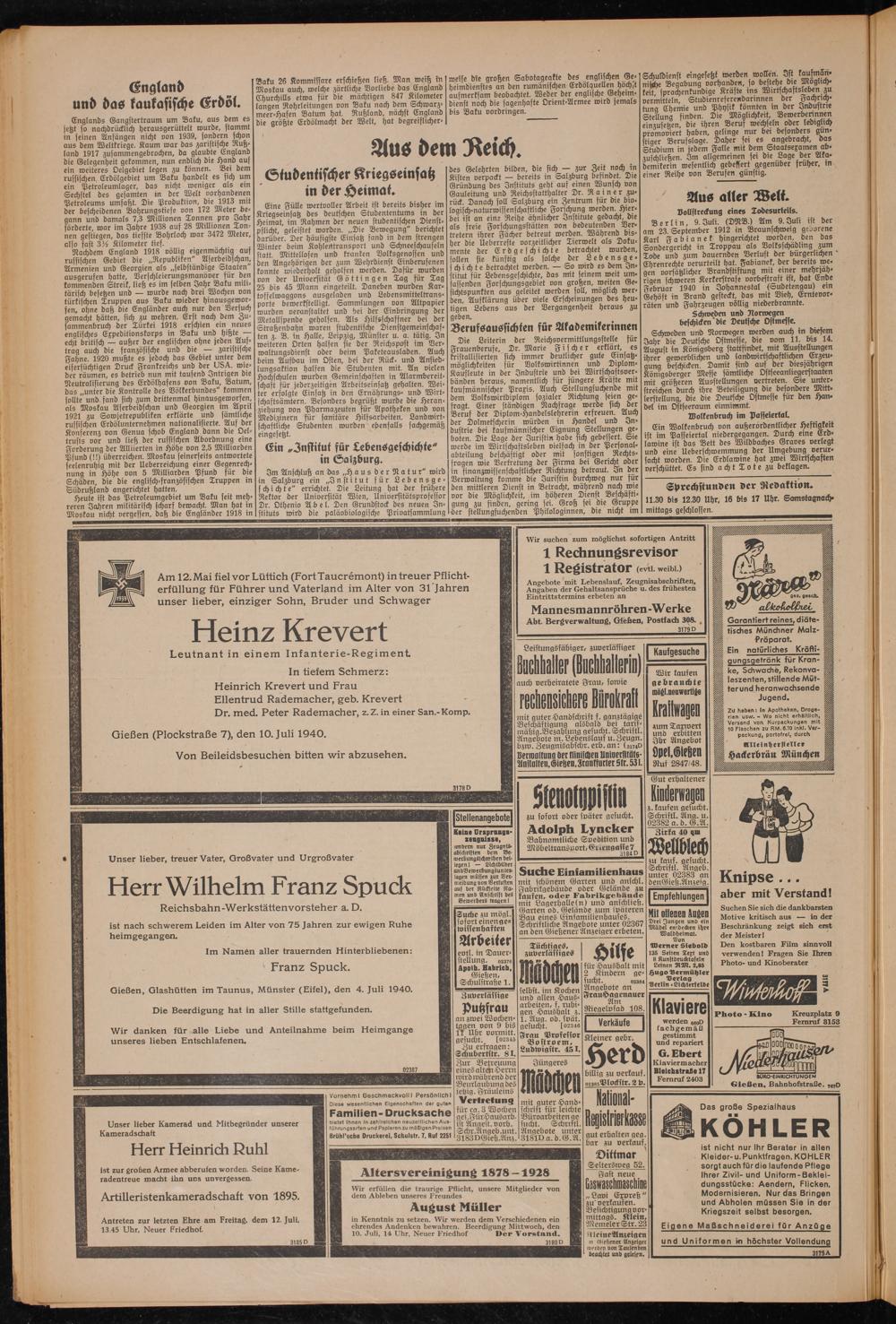 Gießen (Plockstraße 7), den 10. Juli 1940.