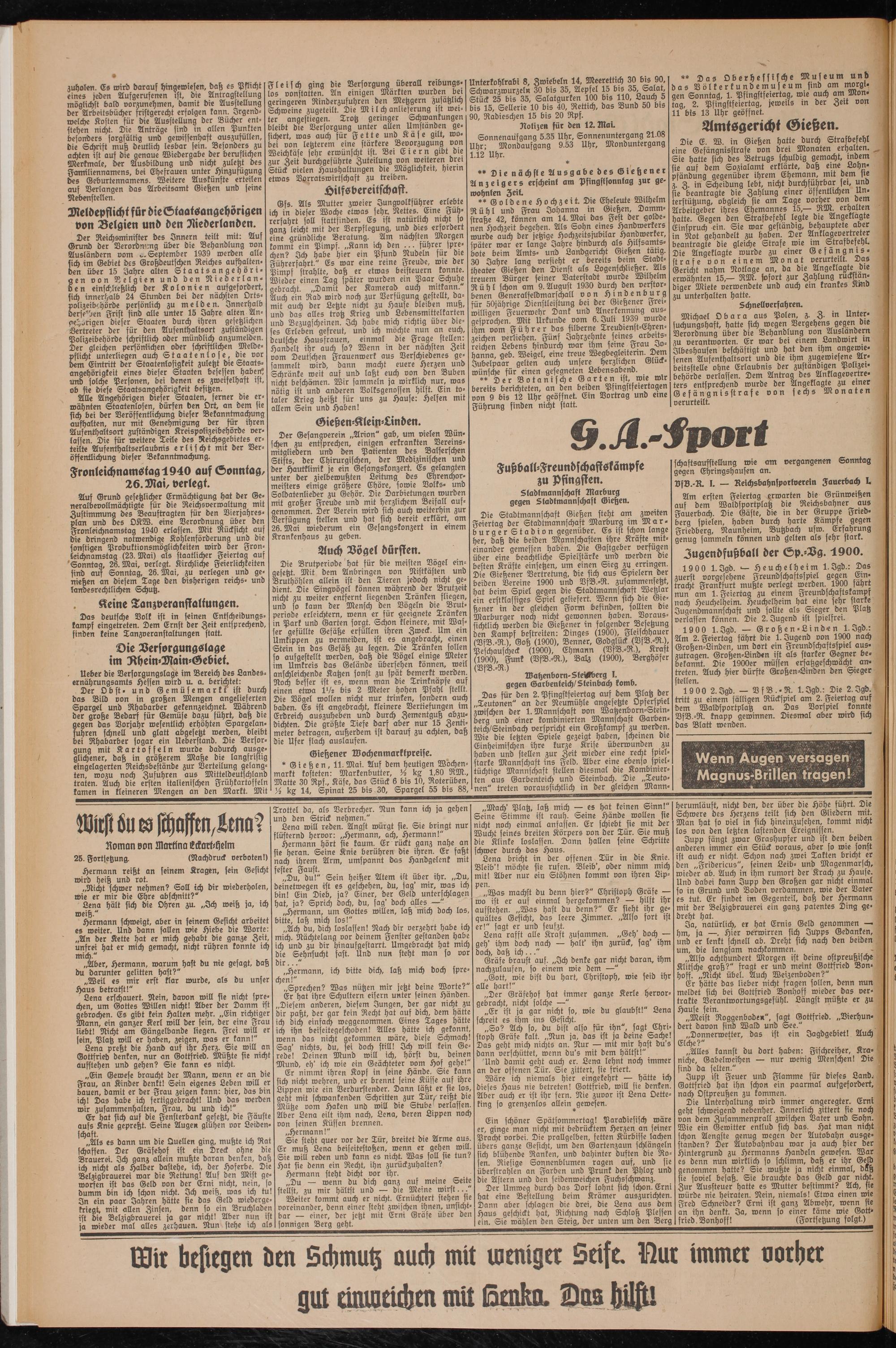 ** Die nächste Ausgabe des Gießener Anzeigers erscheint am Pfingstsonntag zur gewohnten Zeit.