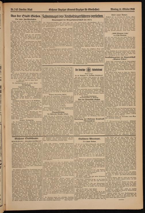 ttr.243 Zweiter Blatt Gießener Anzeiger (General-Anzeiger für Gberheffen) Montag, K Oktober W