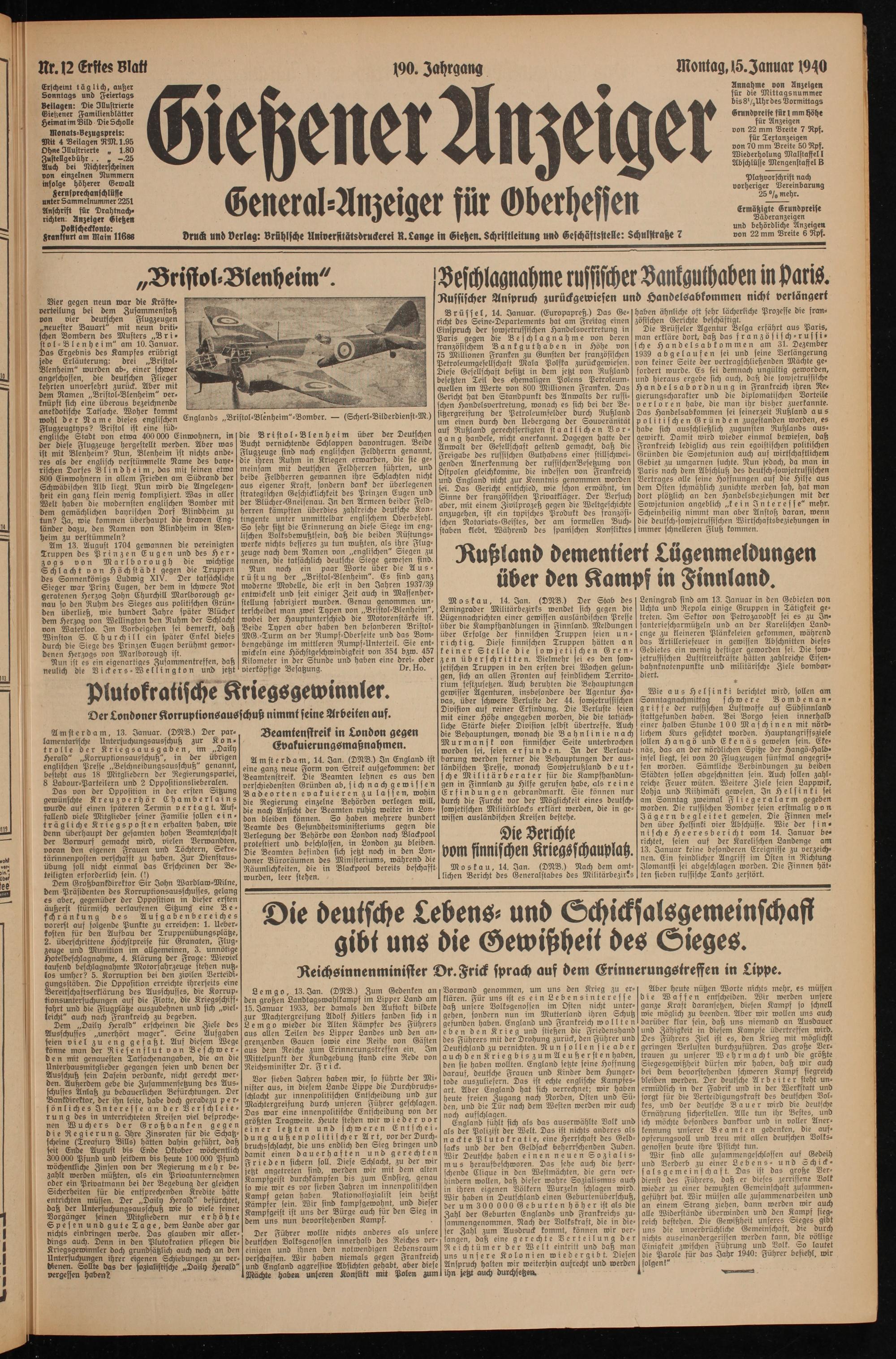 Vrvck und Verlag: vrühlsche Univerfilälsdruckerei ».Lang« in Gießen. Schristleitung und Seschöftrftrkle: Schulftrahe 1