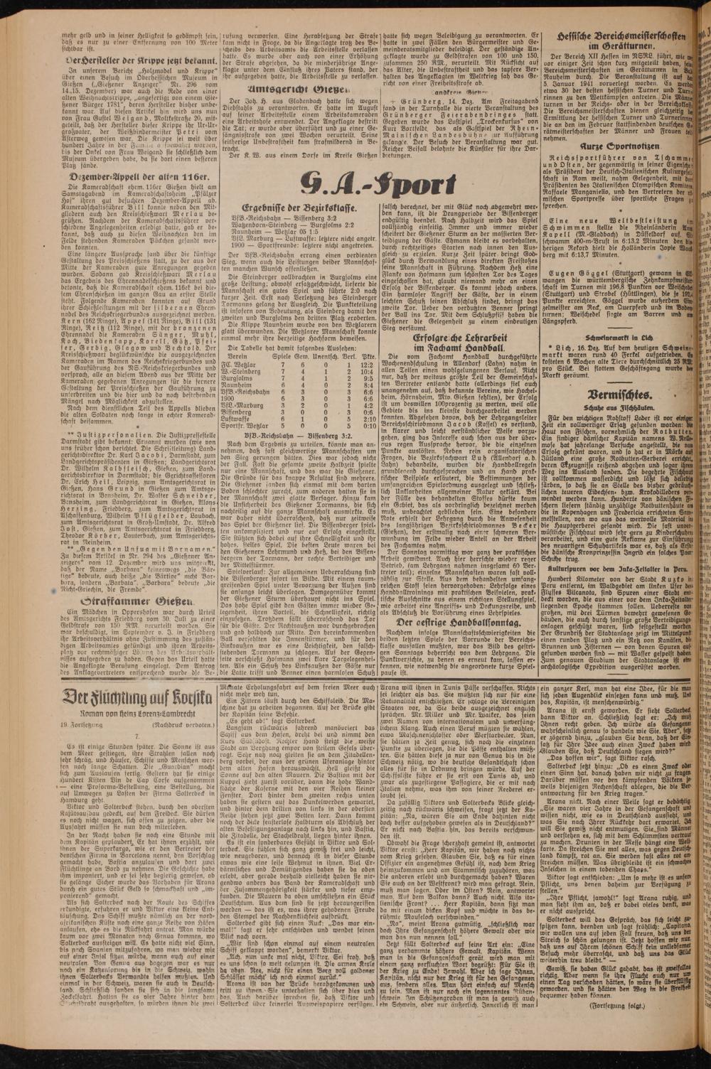 - Die Kameradschaft ehern. 116er Gießen hielt am Samstagabend im Kameradschaftsheim „Pfälzer Hof" ihren gut besuchten Dezember-Appell ab. Kameradschaftsführer Bill konnte neben den Mitgliedern auch den Kreisschießwart Merlau begrüßen. Nachdem der Kameradschastsführer verschiedene Angelegenheiten erledigt hatte, gab er bekannt, daß auch zu diesen Weihnachten den im Felde stehenden Kameraden Päckchen gesandt werden konnten.