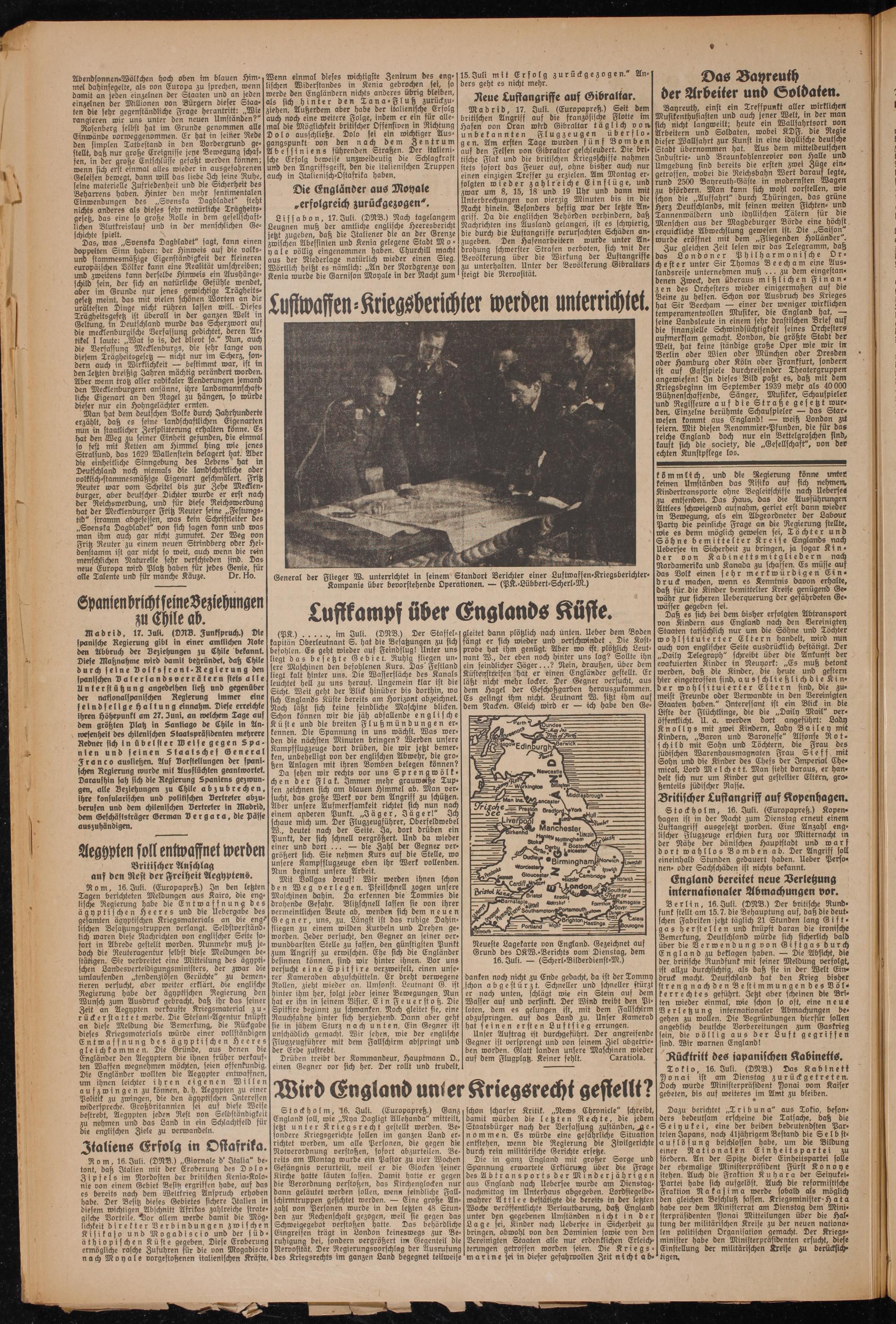 Neueste Lagekarte von England. Gezeichnet auf Grund des OKW.-Berichts vom Dienstag, dem 16. Juli. — (Scherl-Bilderdienst-M.)