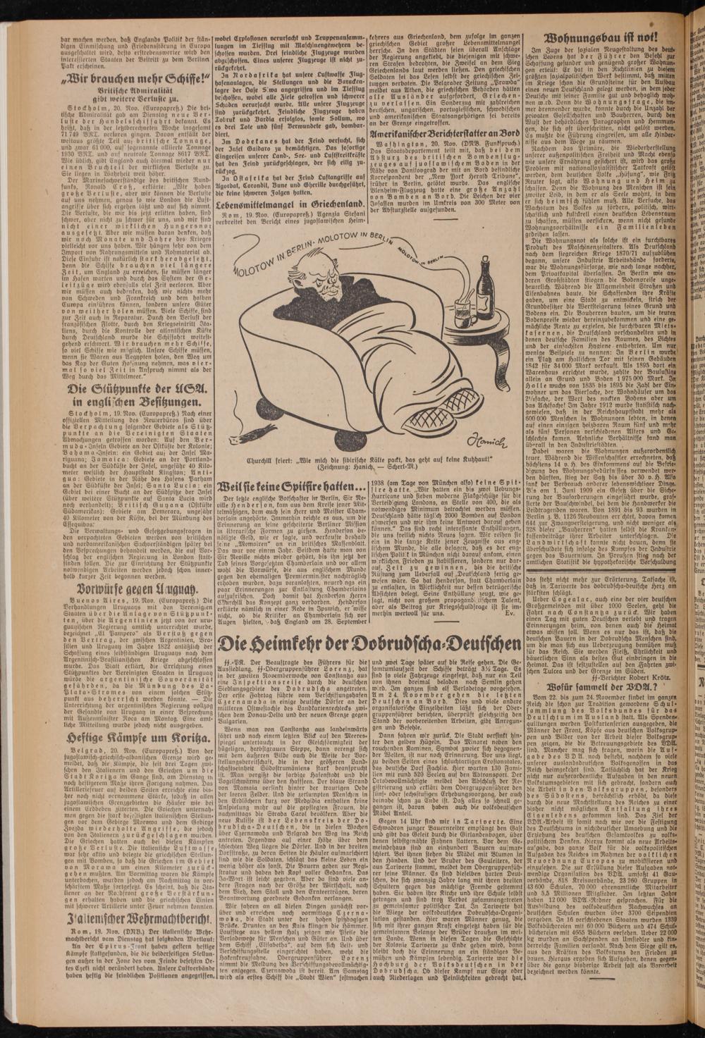 und Mei Taye später auf die Reist gehen. Die Ge- samtumlaufzett der Schiffe beträgt 3% Tage. Es sind so viele Fahrzeuge eingesetzt, daß nur ein Teil von ihnen dreimal beladen nach Semlin gehen wird. Im ganzen sind elf Derladetage vorgesehen. Am 2 4. November gehen die letzten Deutschen an Bord. Dies und viele andere onganisaiiorösche Einzelheiten läßt sich der Obergruppenführer berid)ten, überprüft gleichzeitig den etanb der vorbereitenden Arbeiten, gibt Anregungen und Befehle.