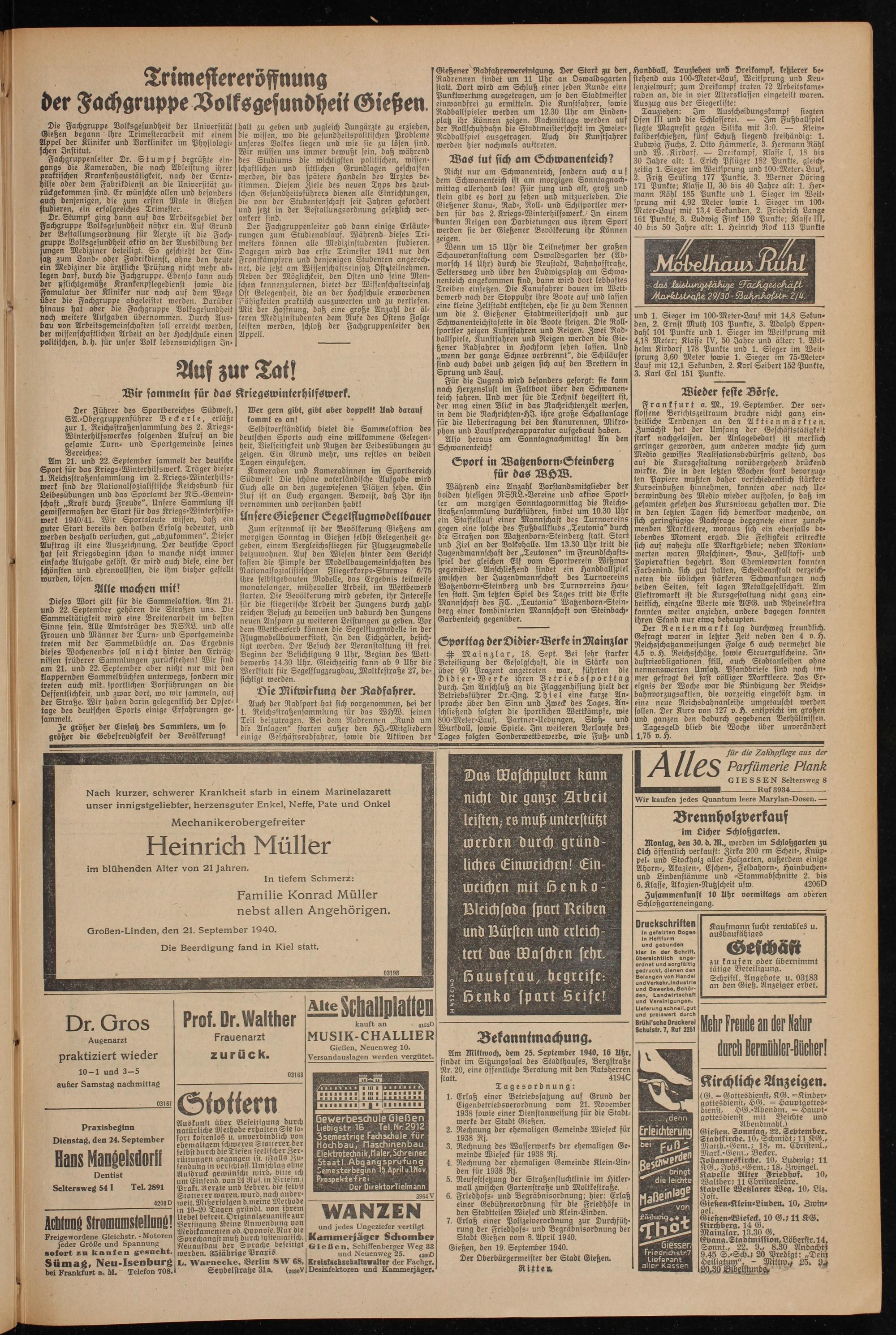 Am Mittwoch, dem 25. September 1940, 16 Uhr, findet im Sitzungssaal des Stadthauses, Bergstraße Nr. 20, eine öffentliche Beratung mit den Ratsherren statt. . 4194C